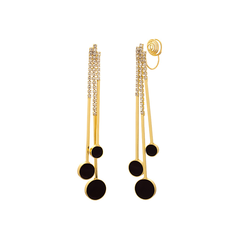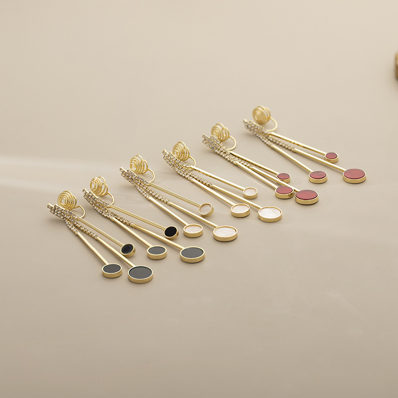 时尚气质欧美风几何长款耳环简约优雅感通勤蚊香盘无耳洞耳夹