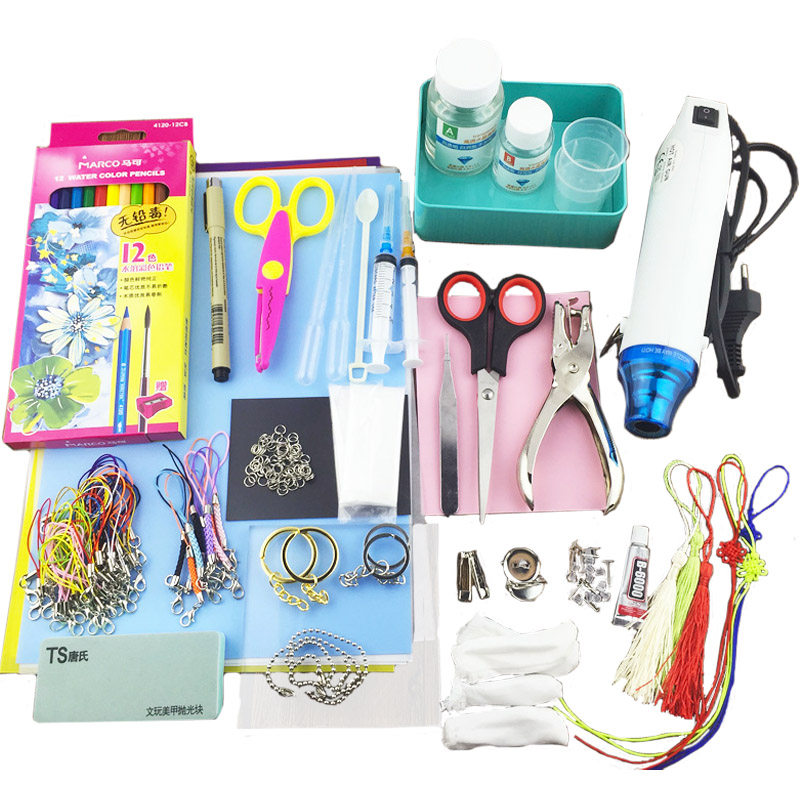 热缩片新手套装 手机链饰品DIY材料包 橡皮章热缩片滴胶热风枪