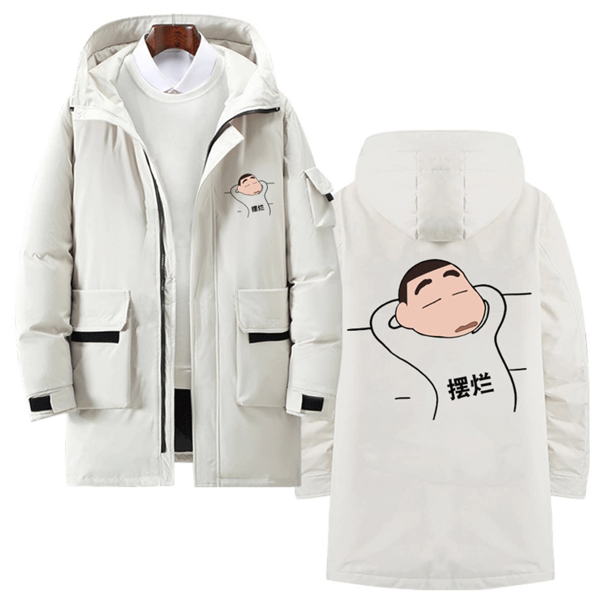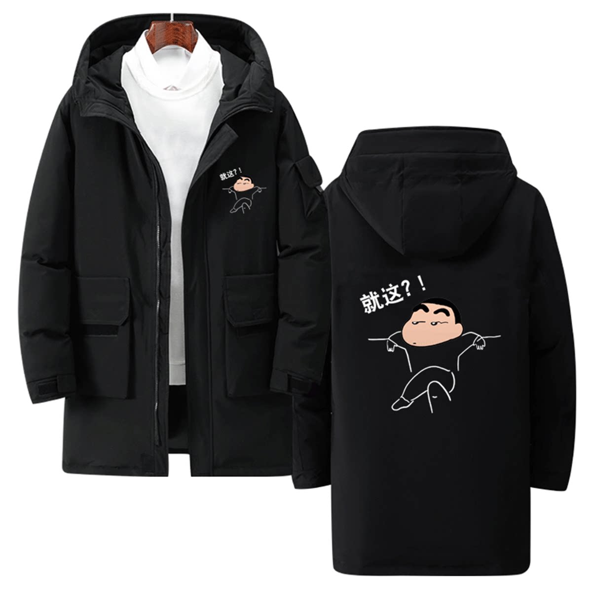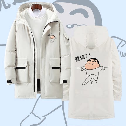 蜡笔小新卡通摆烂搞坏情侣联名动漫周边男女中长款连帽外套羽绒服
