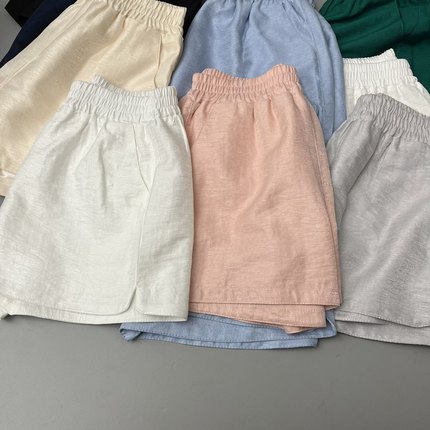 夏短裤女冰丝亚光棉麻质感小个子百搭松紧腰开叉薄款大码阔腿热裤