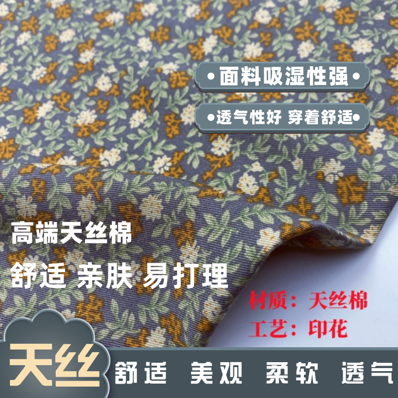 天丝棉碎花夏季印花田园新款斜纹