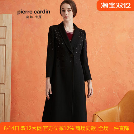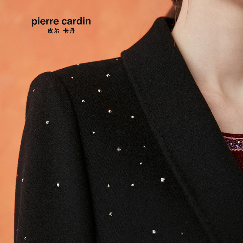 商场同款皮尔卡丹女装通勤百搭烫钻修身毛呢大衣