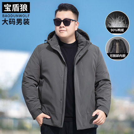 可脱卸羽绒内胆保暖外套男装大码胖子宽松百搭冬季可拆卸帽羽绒服