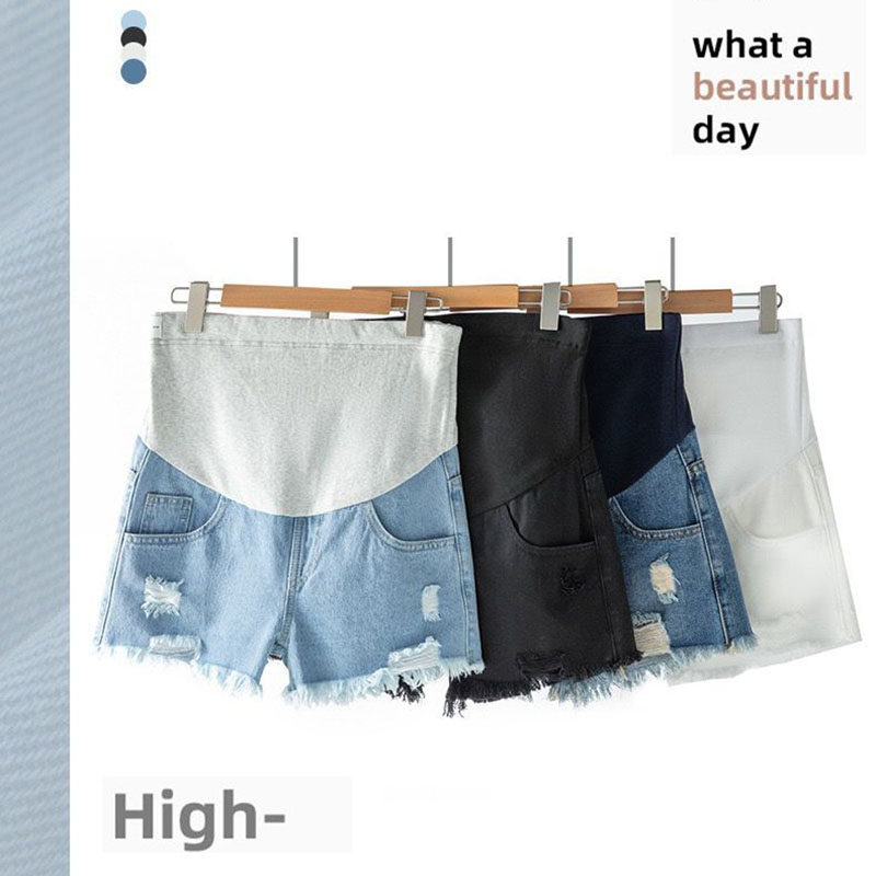 孕妇短裤夏季薄款孕妇牛仔裤子外穿时尚破洞阔腿裤宽松打底裤夏装
