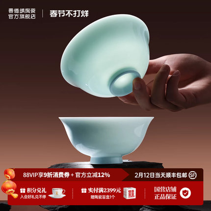 景德镇官方手工餐具陶瓷高温白瓷吃饭碗盘纯色中式套装礼盒家用