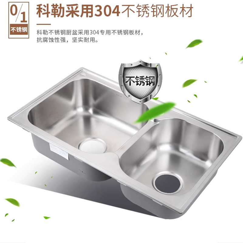 科勒304不锈钢水槽大小双槽厨房洗菜盆台上台下式洗碗池厨盆76024