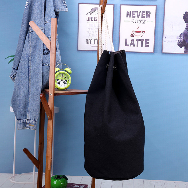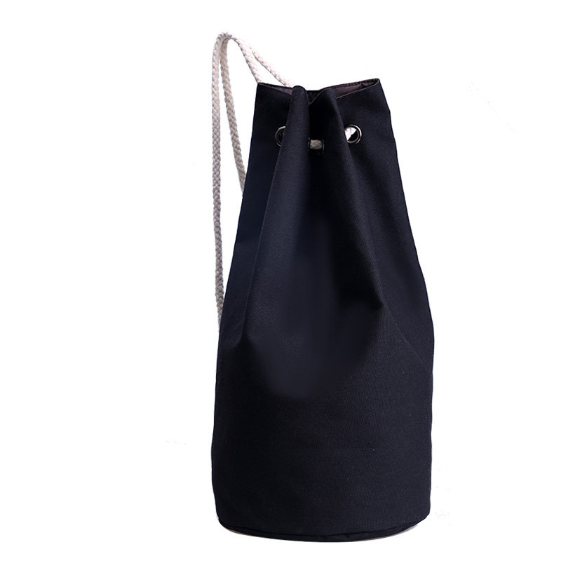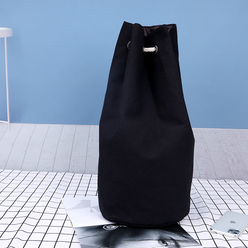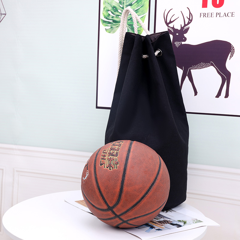 新款纯色帆布篮球包水桶背包男女训练包抽绳束口双肩运动袋大容量