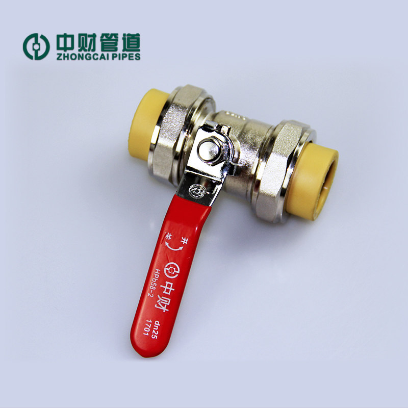 中财咖喱色PPR冷热给水管材配件双活接铜球阀dn25大流量阀门开关