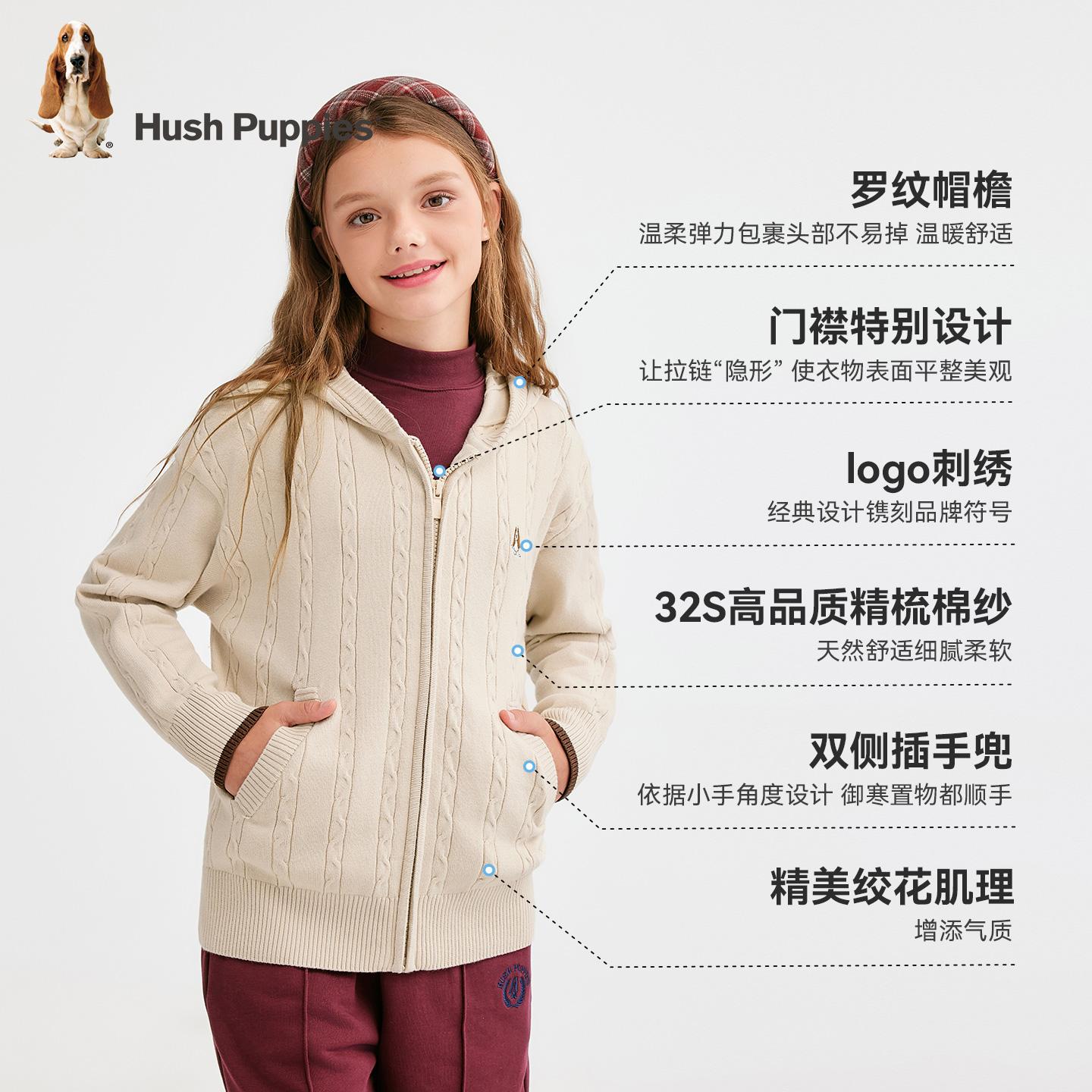 暇步士童装儿童连帽线衣开衫2025秋冬新款男大童保暖女童毛衣外套
