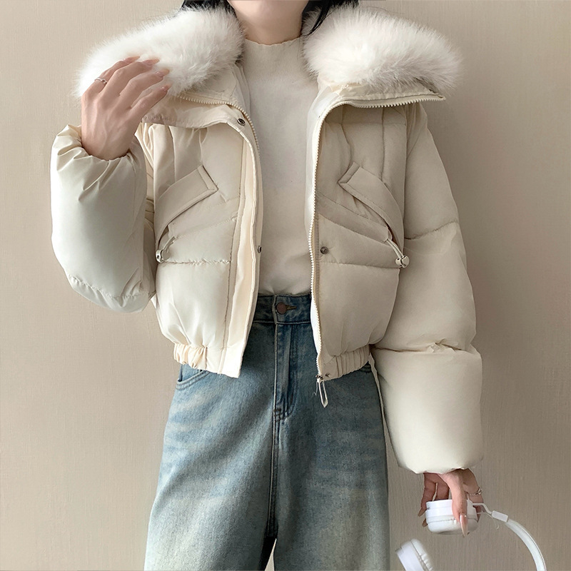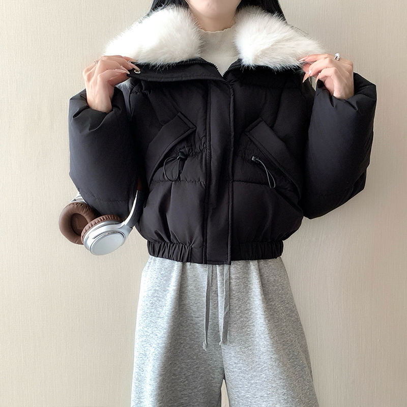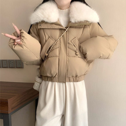 时尚翻领大毛领棉衣女2025冬新款小个子韩版宽松短款羽绒棉服