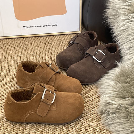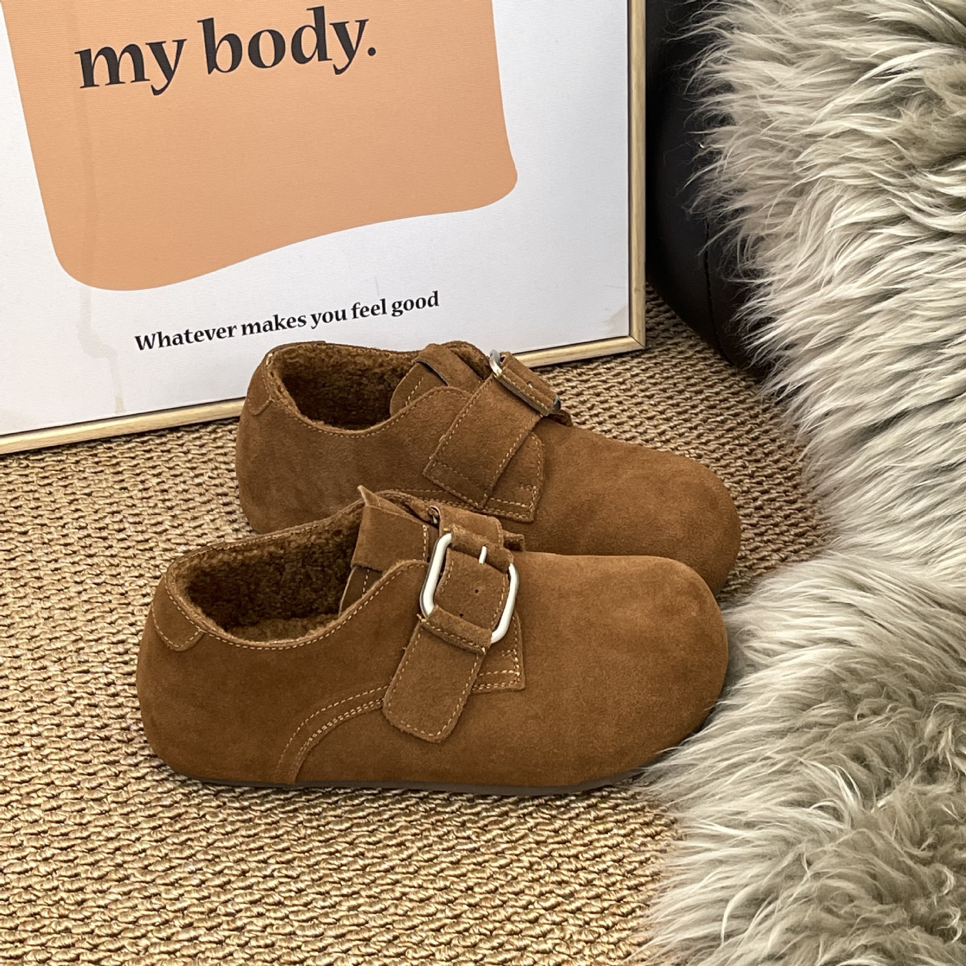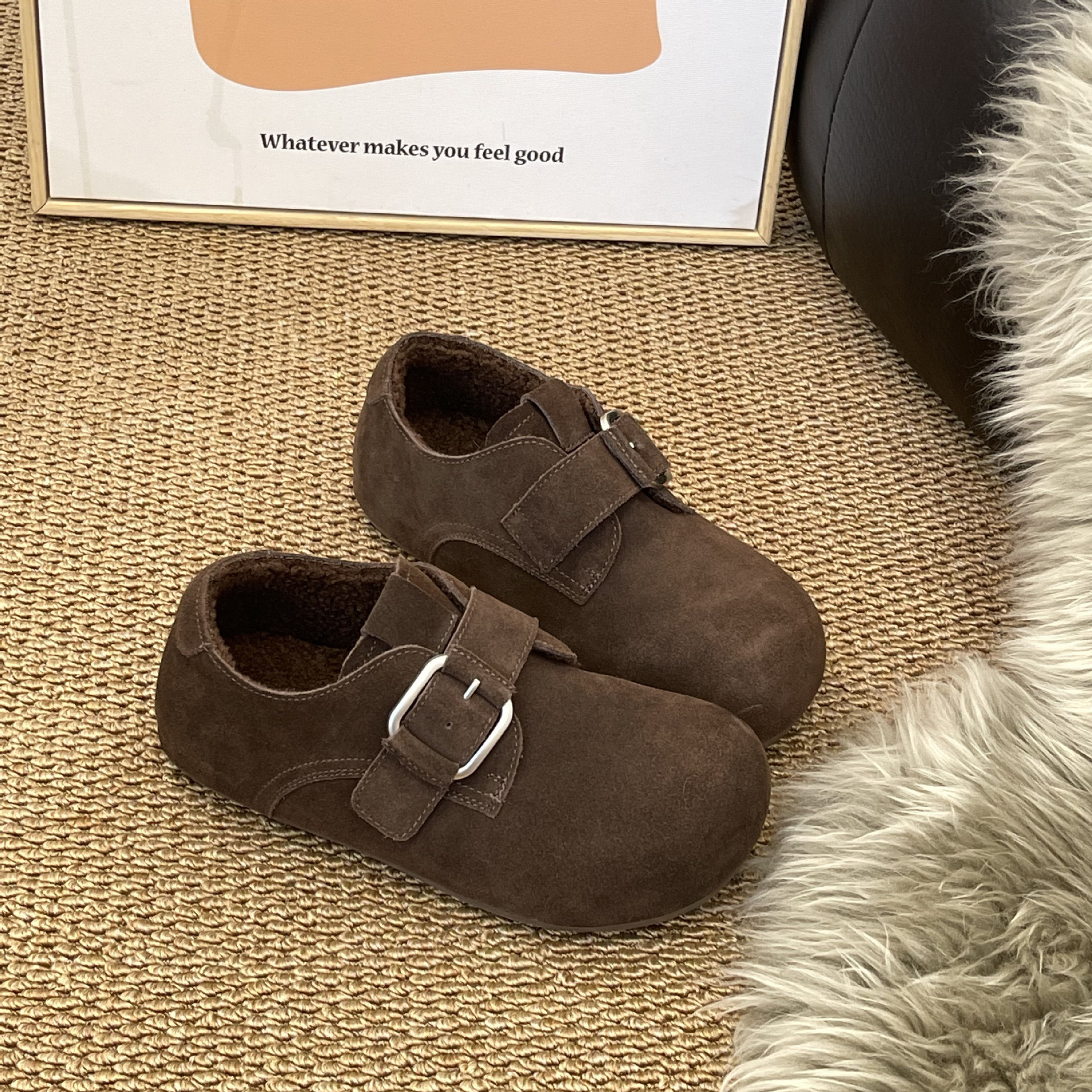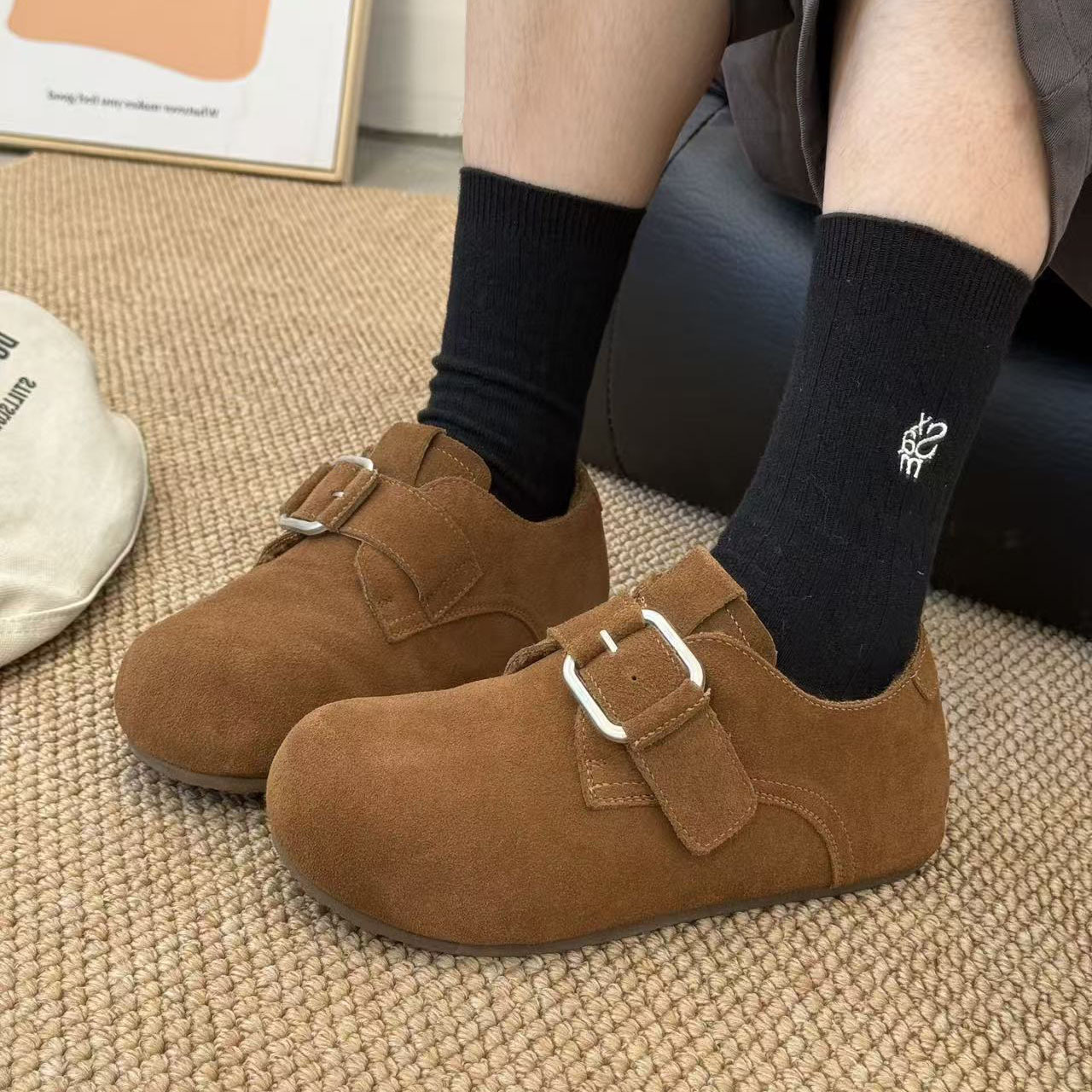 厚底全包勃肯鞋女2025新款秋冬单鞋棕色复古皮鞋真皮女鞋增高鞋子