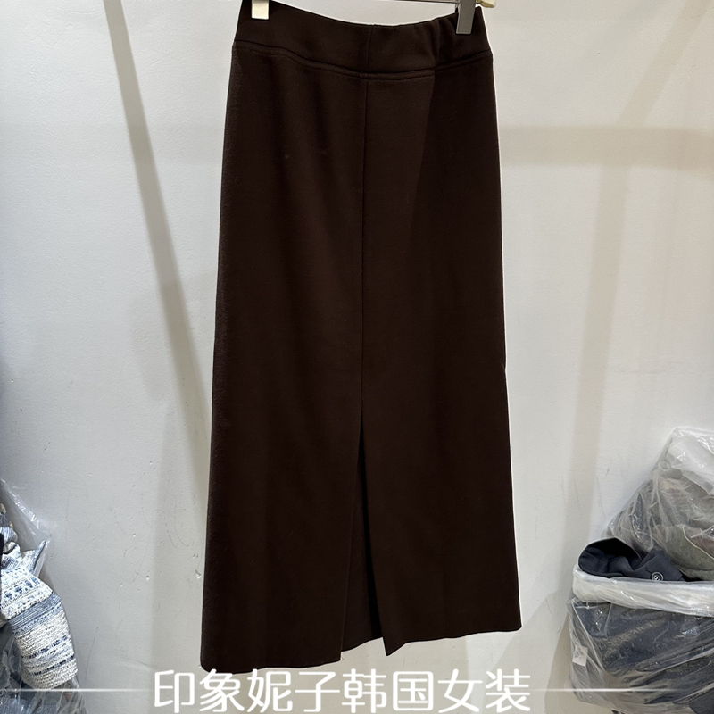 欧洲站2025冬季新款 时尚百搭高腰显瘦开叉中长款A字半身裙89823