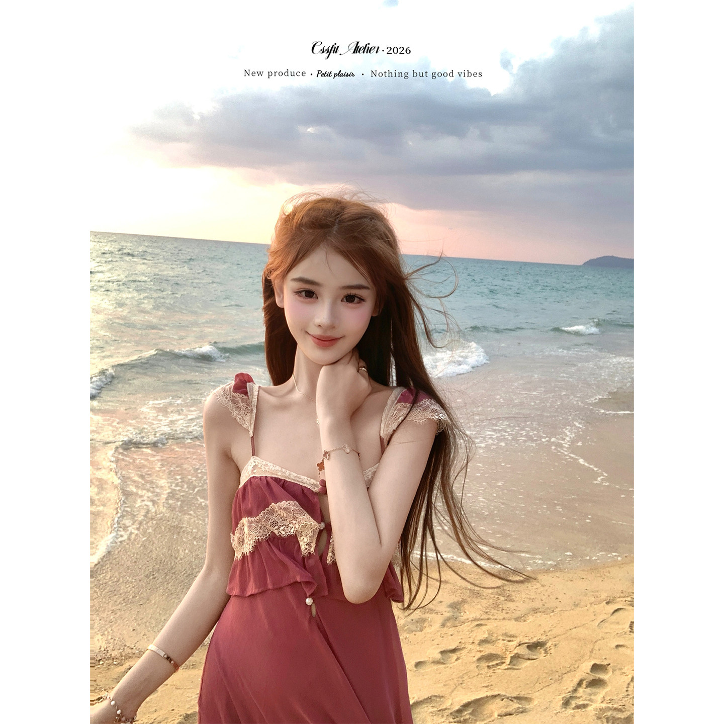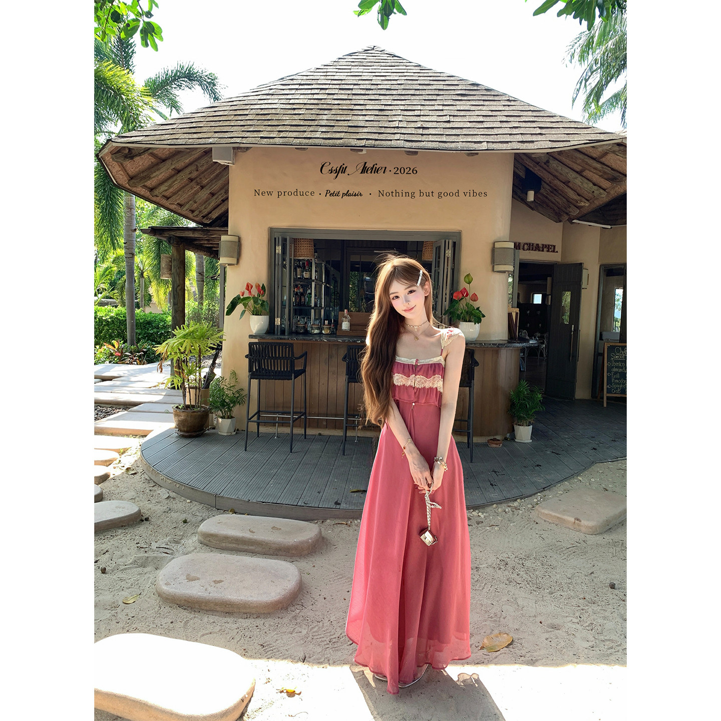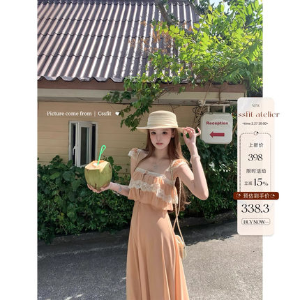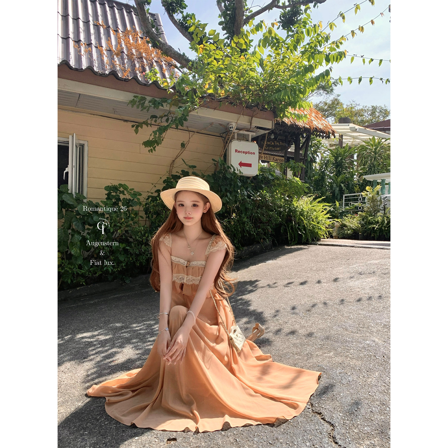 迟伞伞26/ss 亚庇日落 anna同款 ch1oe桃杏色/火龙果色连衣裙两色