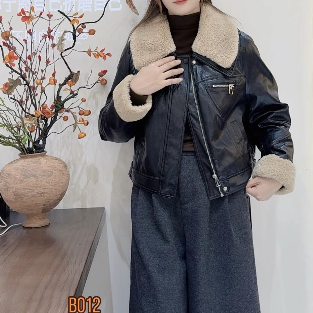 2025秋冬新款韩版时尚羊羔毛翻领短款外套女宽松PU皮衣皮羽绒外套