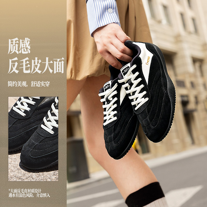 张艺凡同款扁扁鞋361运动鞋T头鞋女冬季新款薄底休闲板鞋德训鞋