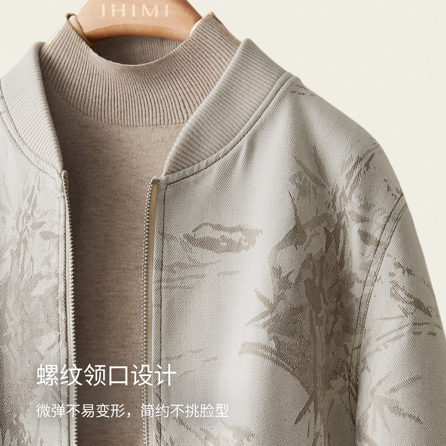 IHIMI海谧复古牛仔提花夹克外套女春季休闲立领百搭棒球服上衣