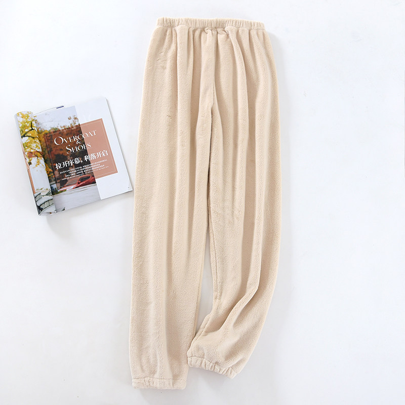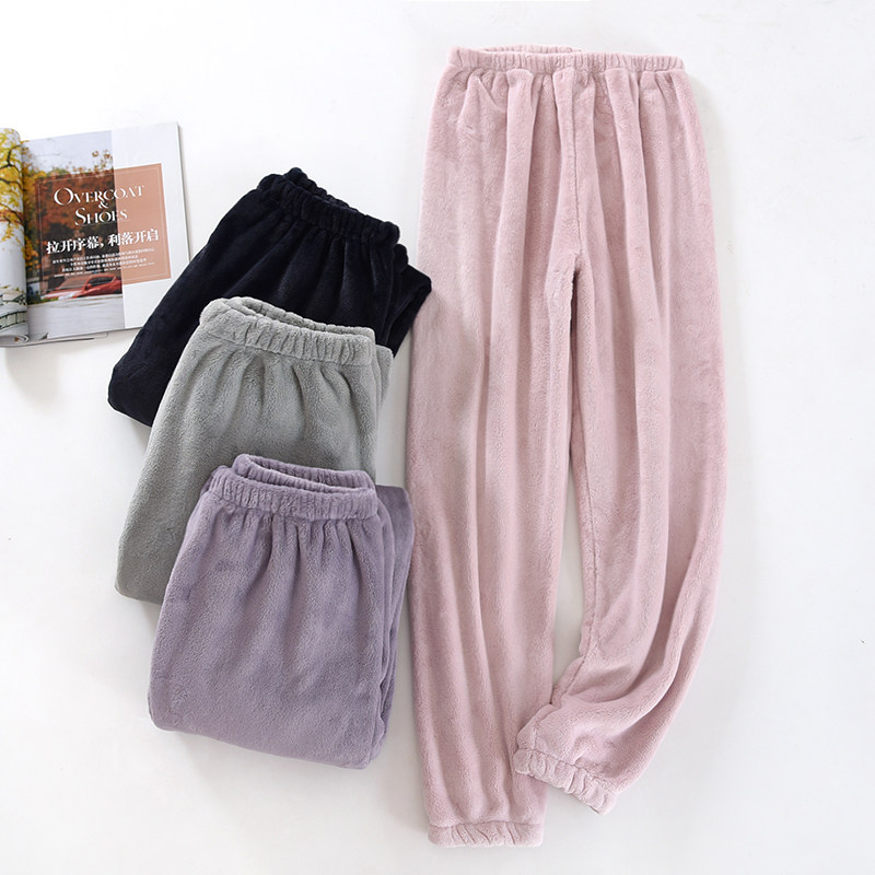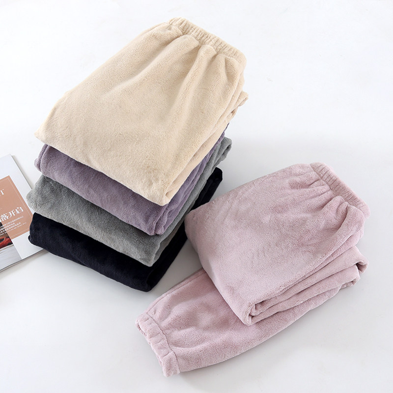 情侣秋冬季珊瑚绒睡裤男女厚保暖居家宽松暖暖裤法兰绒长裤家居服