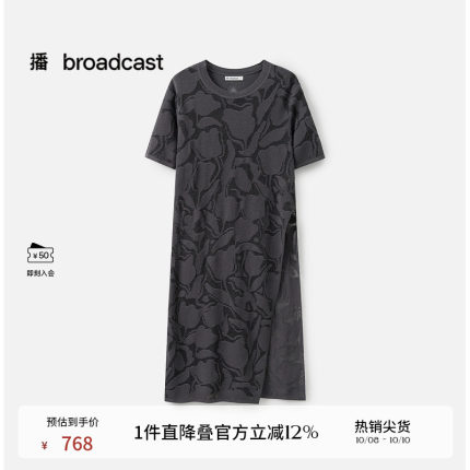播商场同款气质短袖T恤裙女25夏新提花中长款连衣裙BDS2SD2110