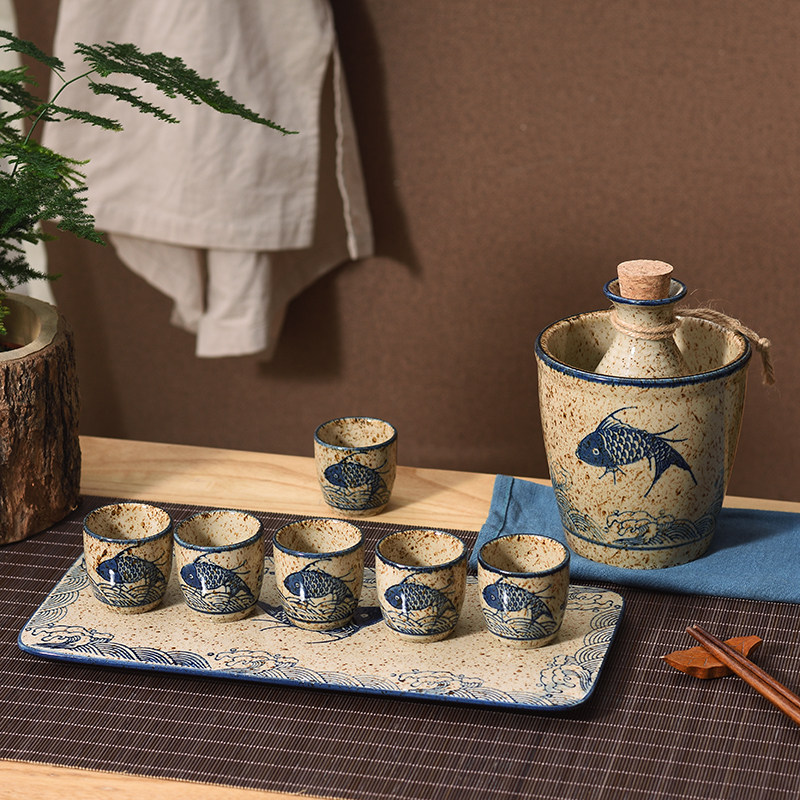 复古日式陶瓷酒具套装烧酒杯温酒壶清酒壶白酒杯分酒器烫酒小酒蛊