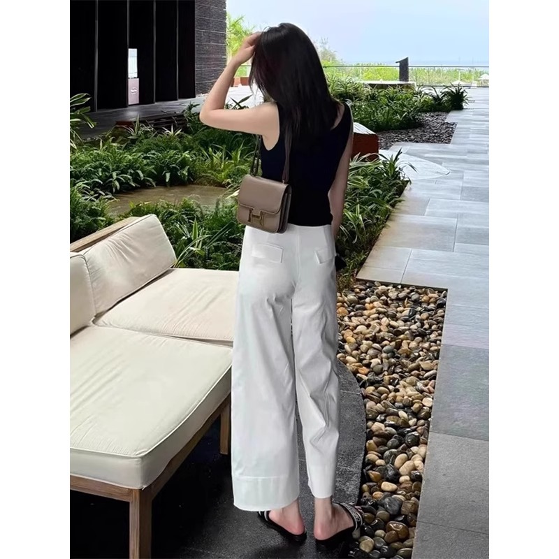 白色西装阔腿休闲裤女夏季薄款大码胖mm小个子高腰显瘦直筒九分裤