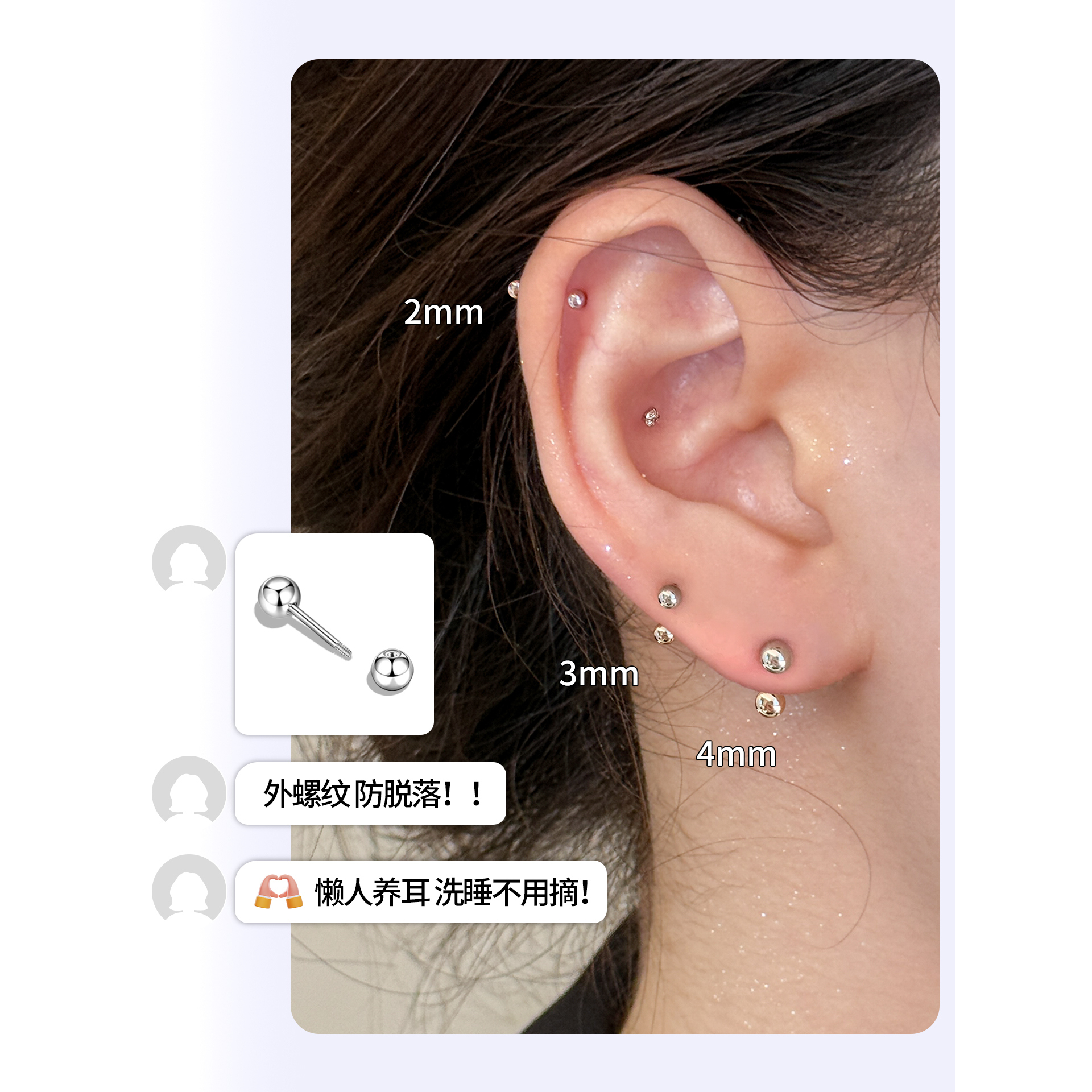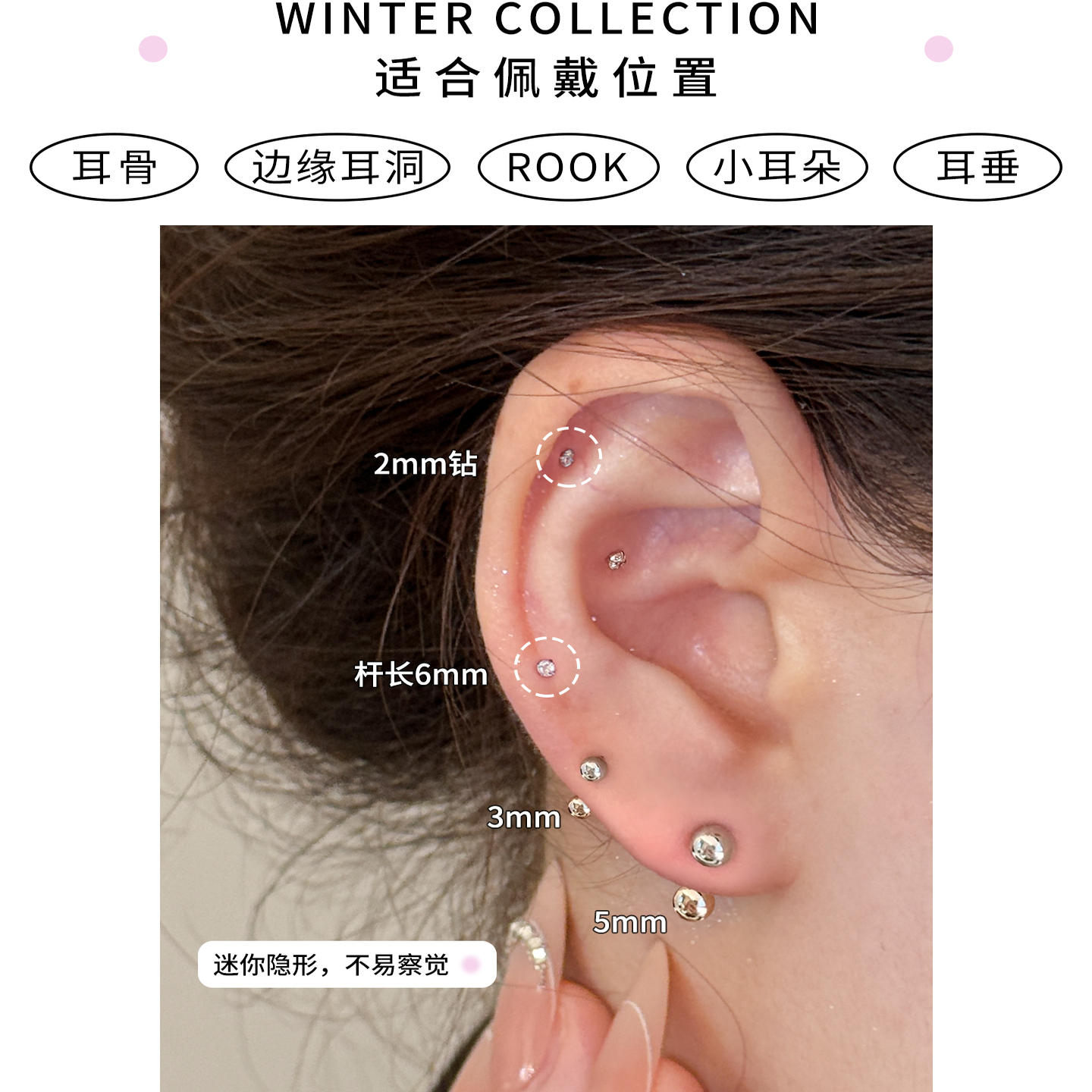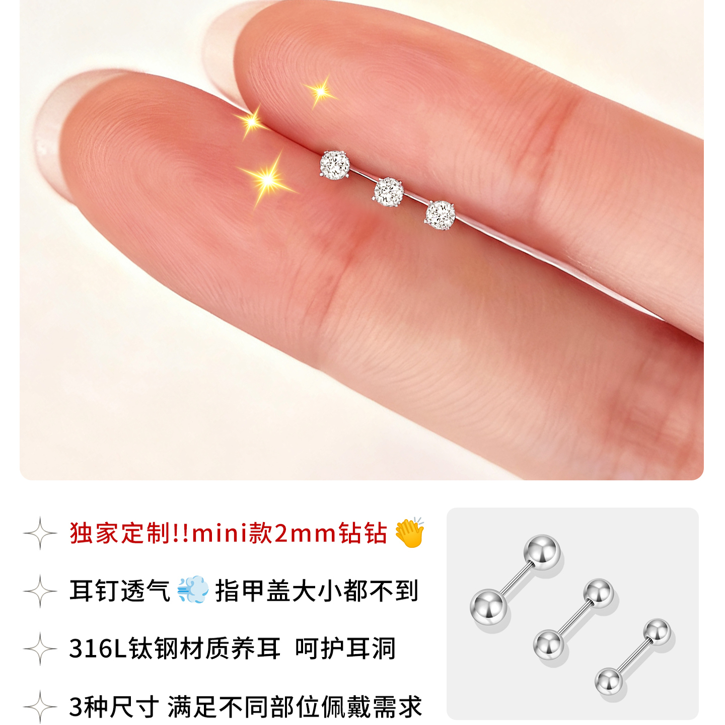 迷你医用钛钢耳钉养耳洞螺丝耳骨钉女钛合金钻石小耳环耳蜗钉耳饰