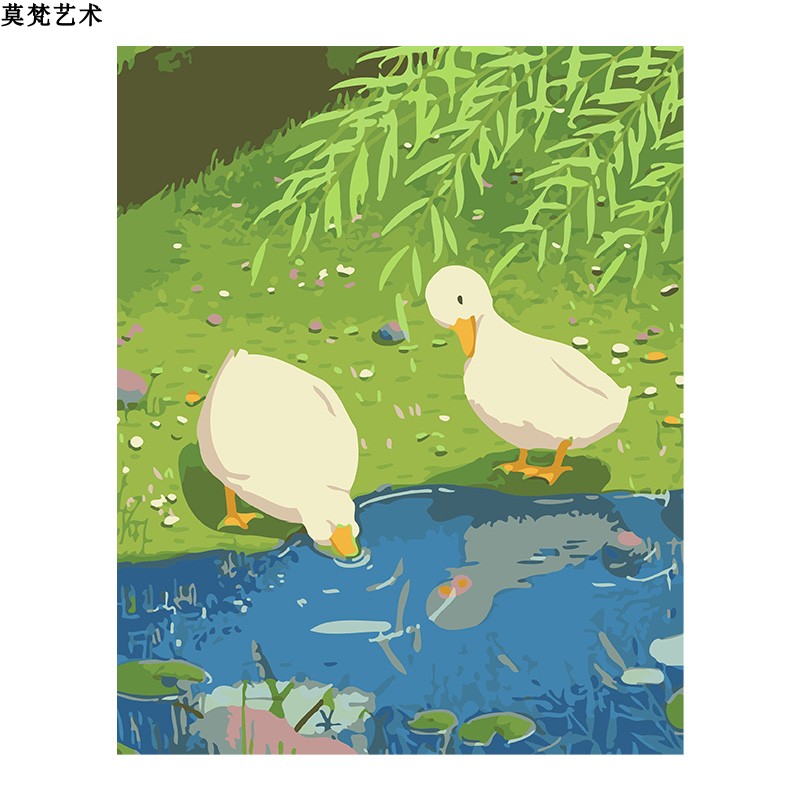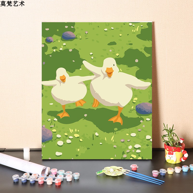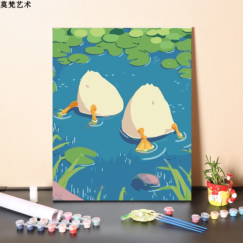 数字油画diy手工填充小鸭子戏水手绘治愈童年儿童房涂色油彩画画