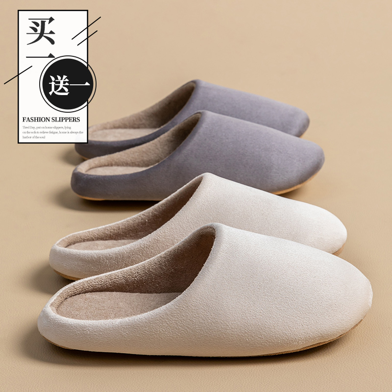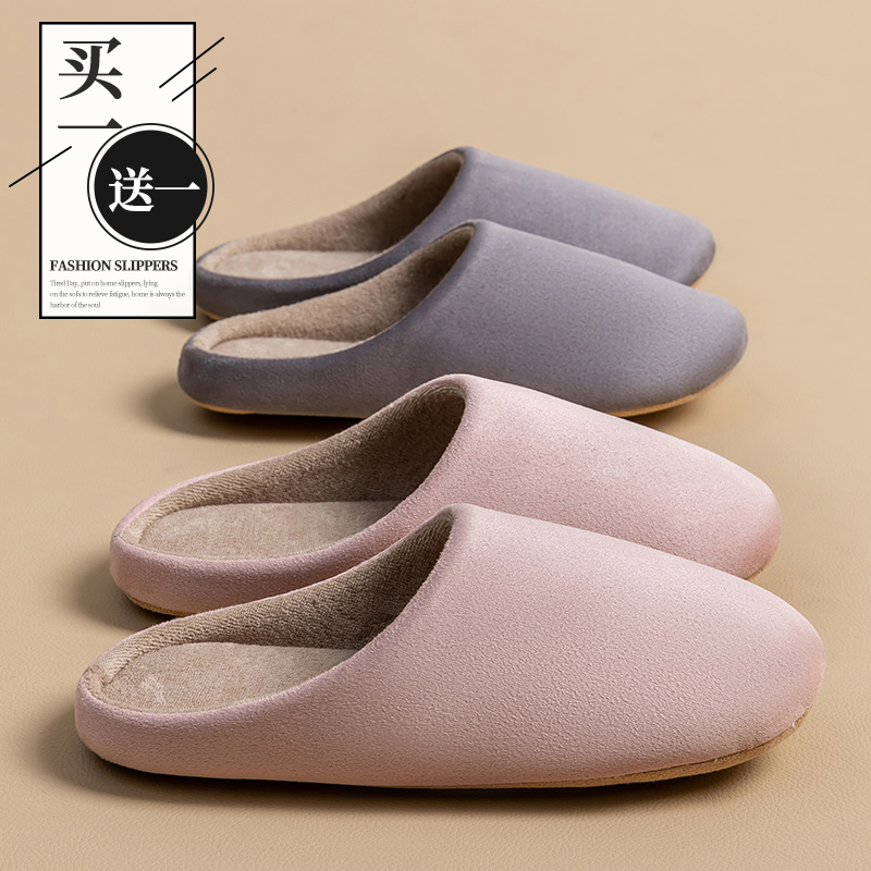 买一送一日式静音拖鞋室内家居男士保暖防滑地板软底棉拖鞋女冬季