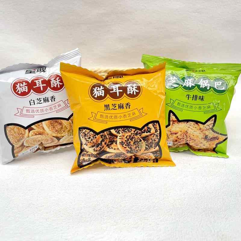 星舰猫耳酥黑白芝麻猫耳朵香脆芝麻锅巴牛排味怀旧解馋小包装零食