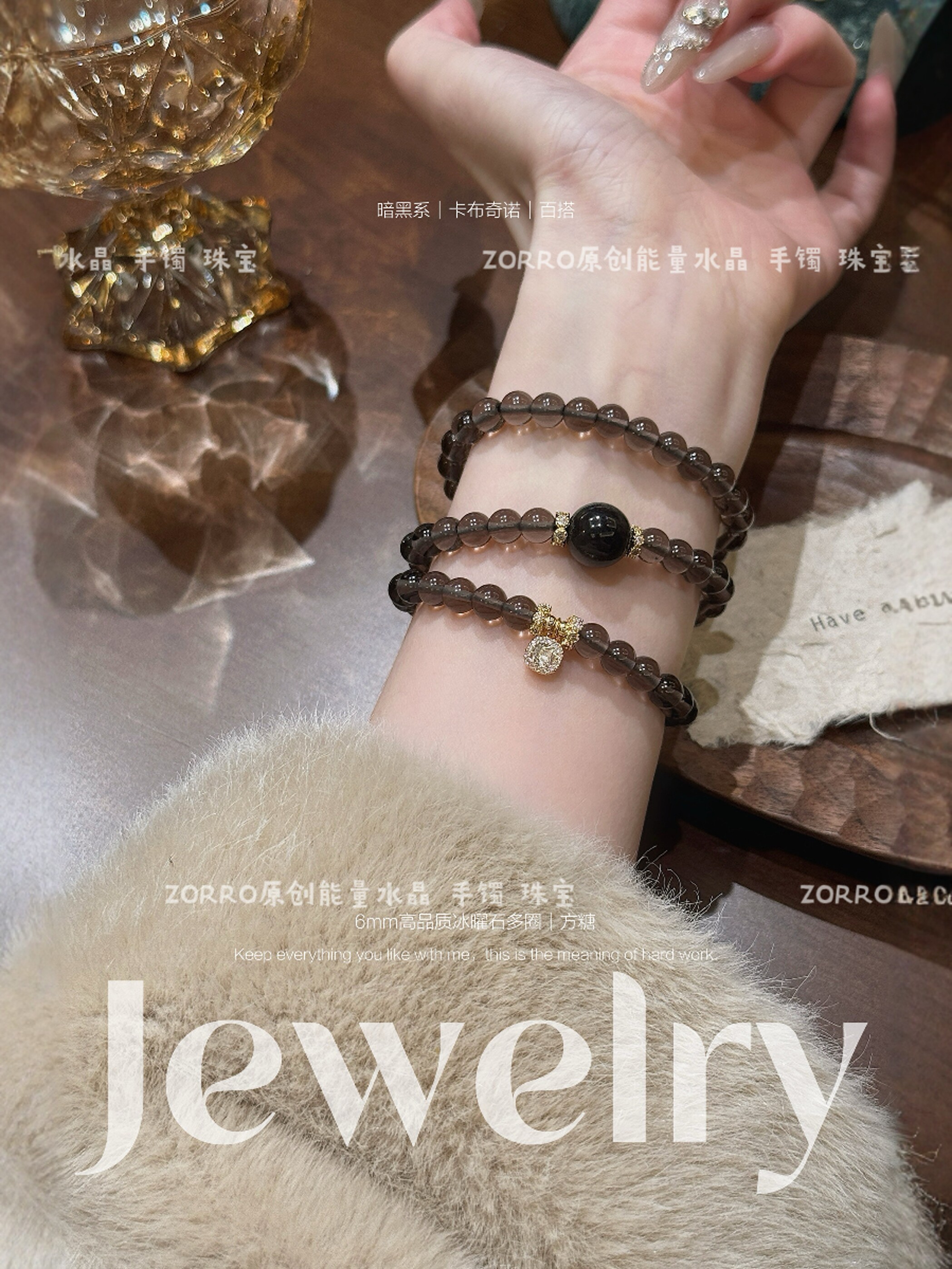 【原创】天然冰曜石手链蛇年三圈多圈酷黑女孩招财暴富好运防小人