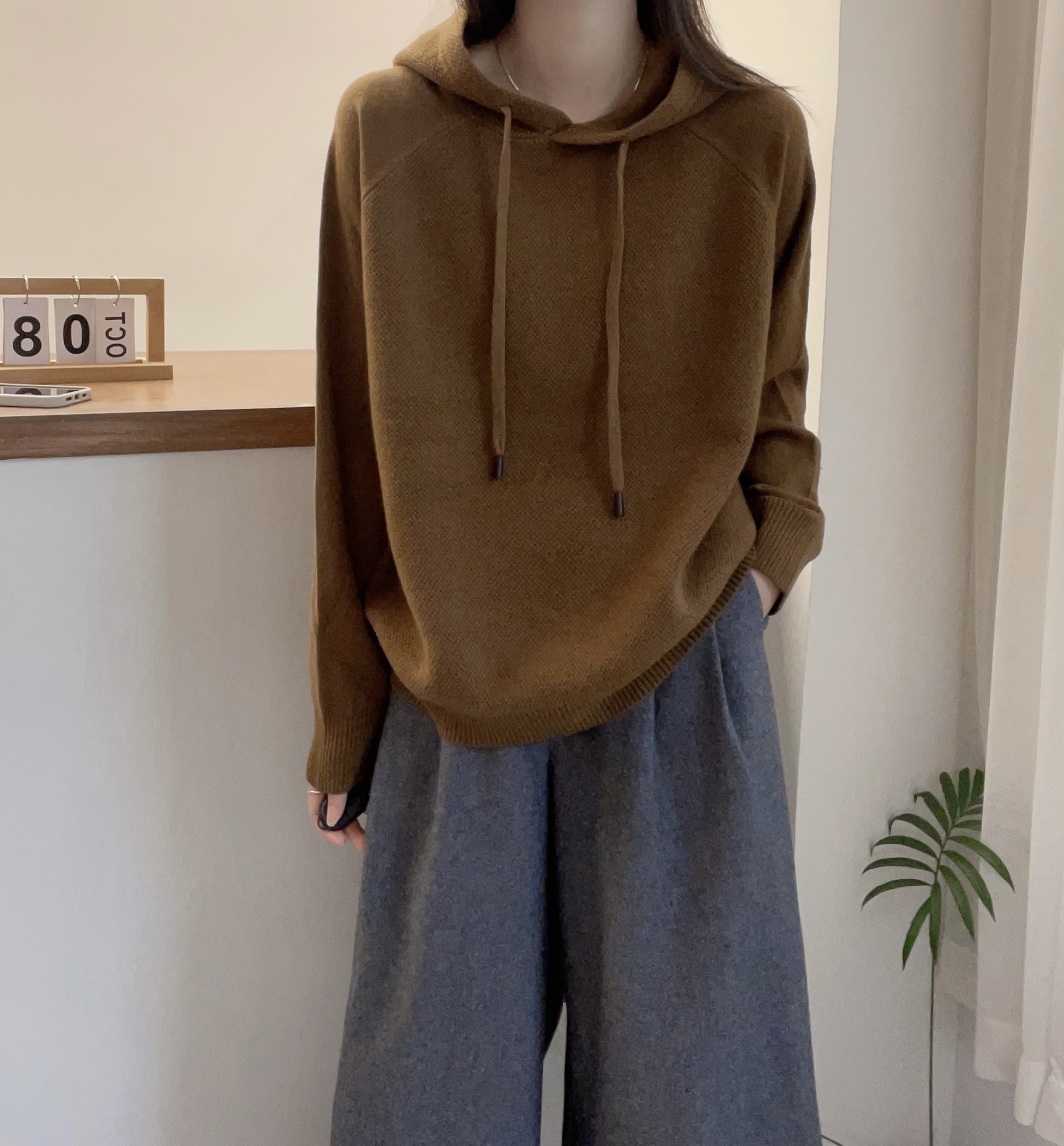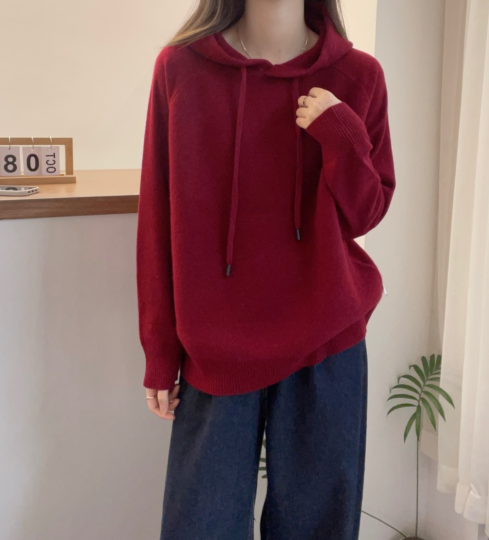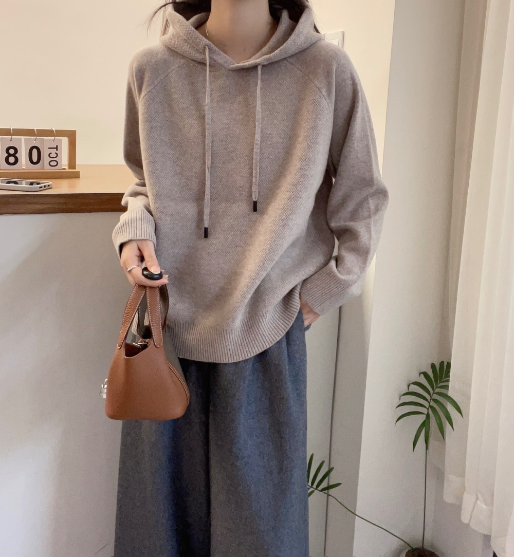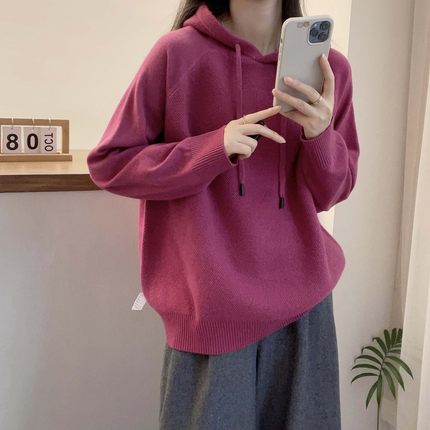 欧洲站2024冬装新款欧货纯色百搭连帽全羊毛针织衫女秋冬宽松毛衣