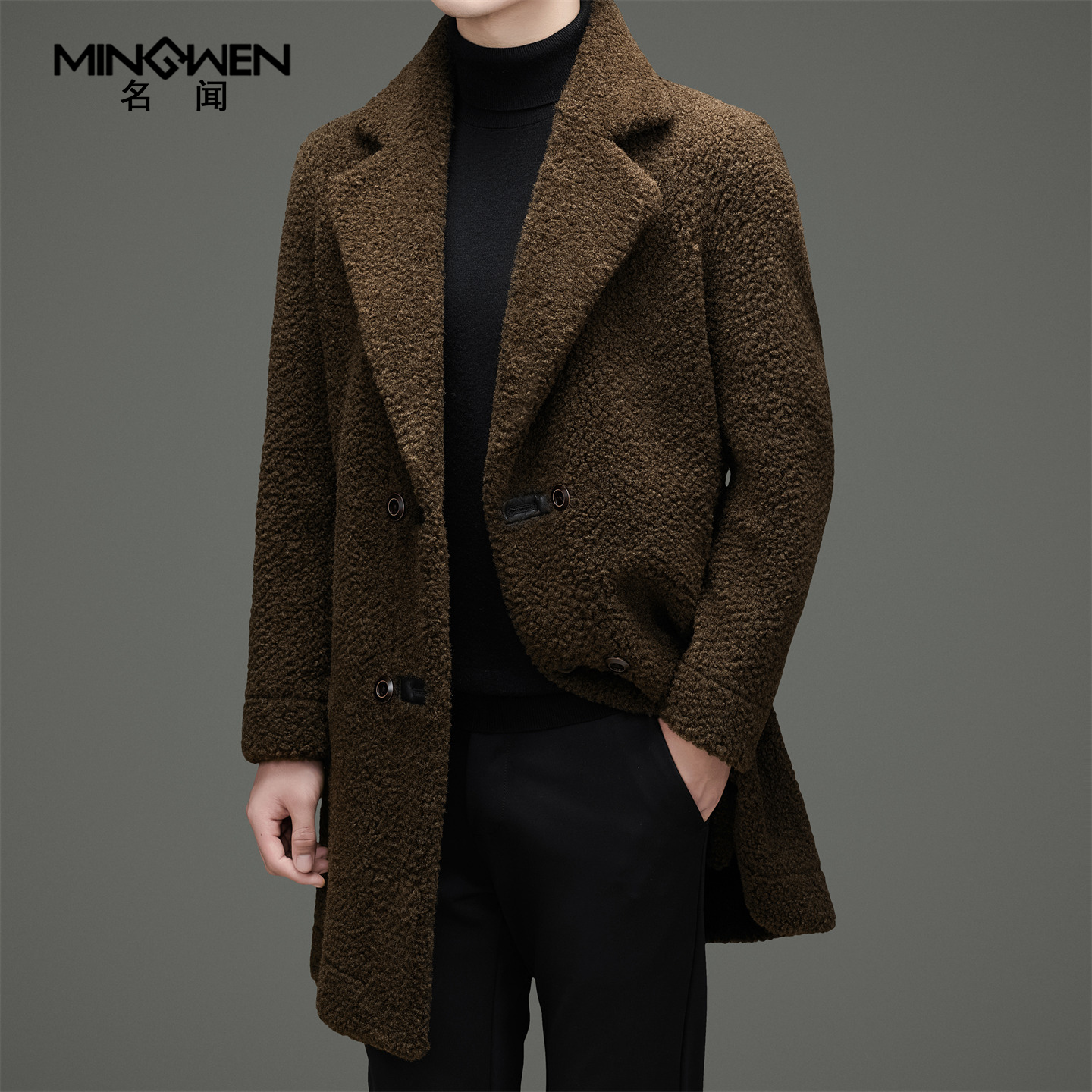 西装领含羊毛颗粒绒大衣男中长款仿皮毛一体羊剪绒皮草双面穿外套