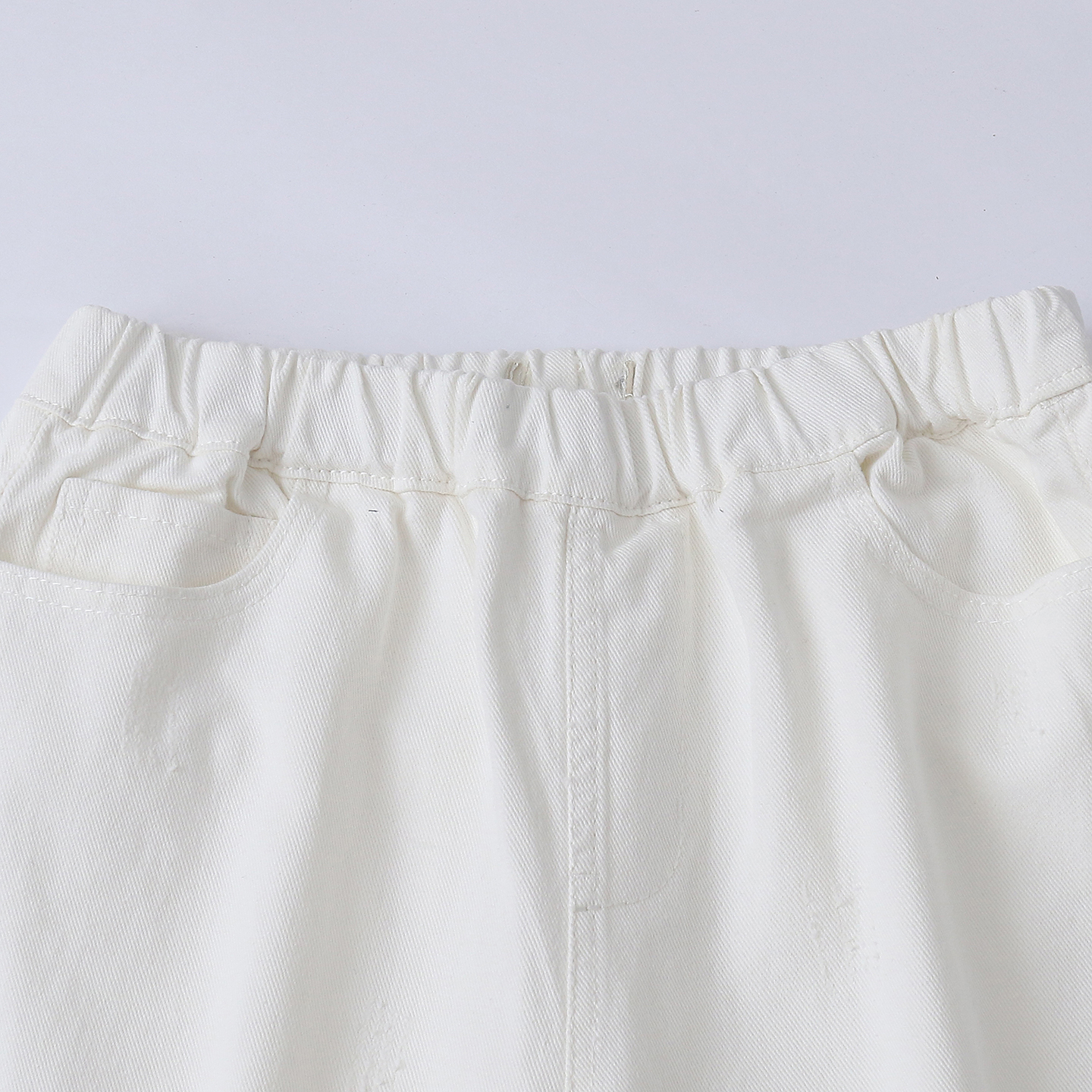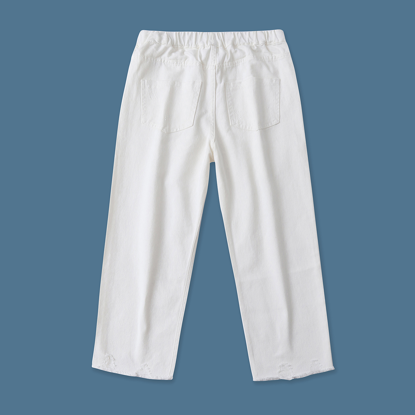 牛仔破洞七分裤夏季新款外贸女装时尚松紧腰修身毛边休闲裤18539