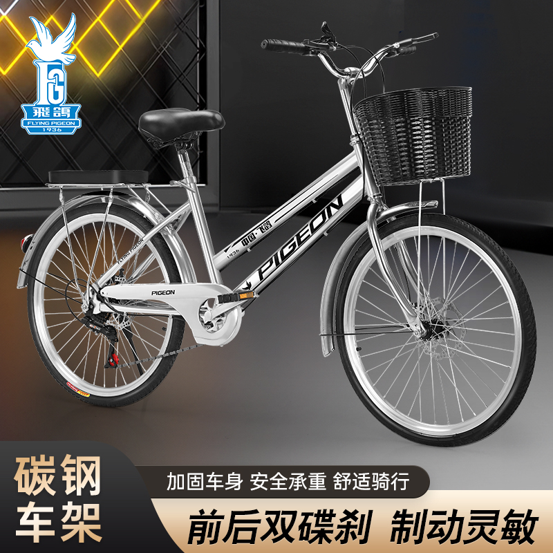 飞鸽男女士自行车大学生成人上班通勤车碟刹24寸26寸轻便变速单车