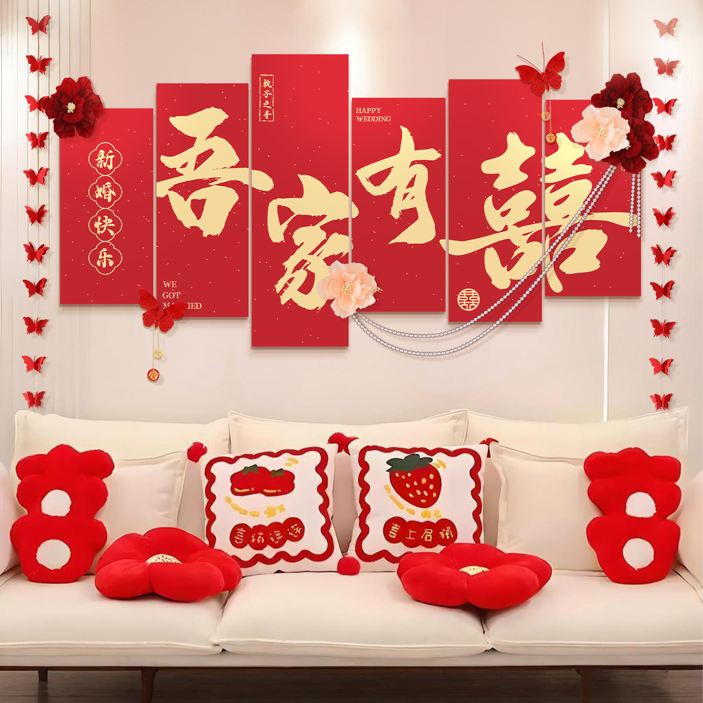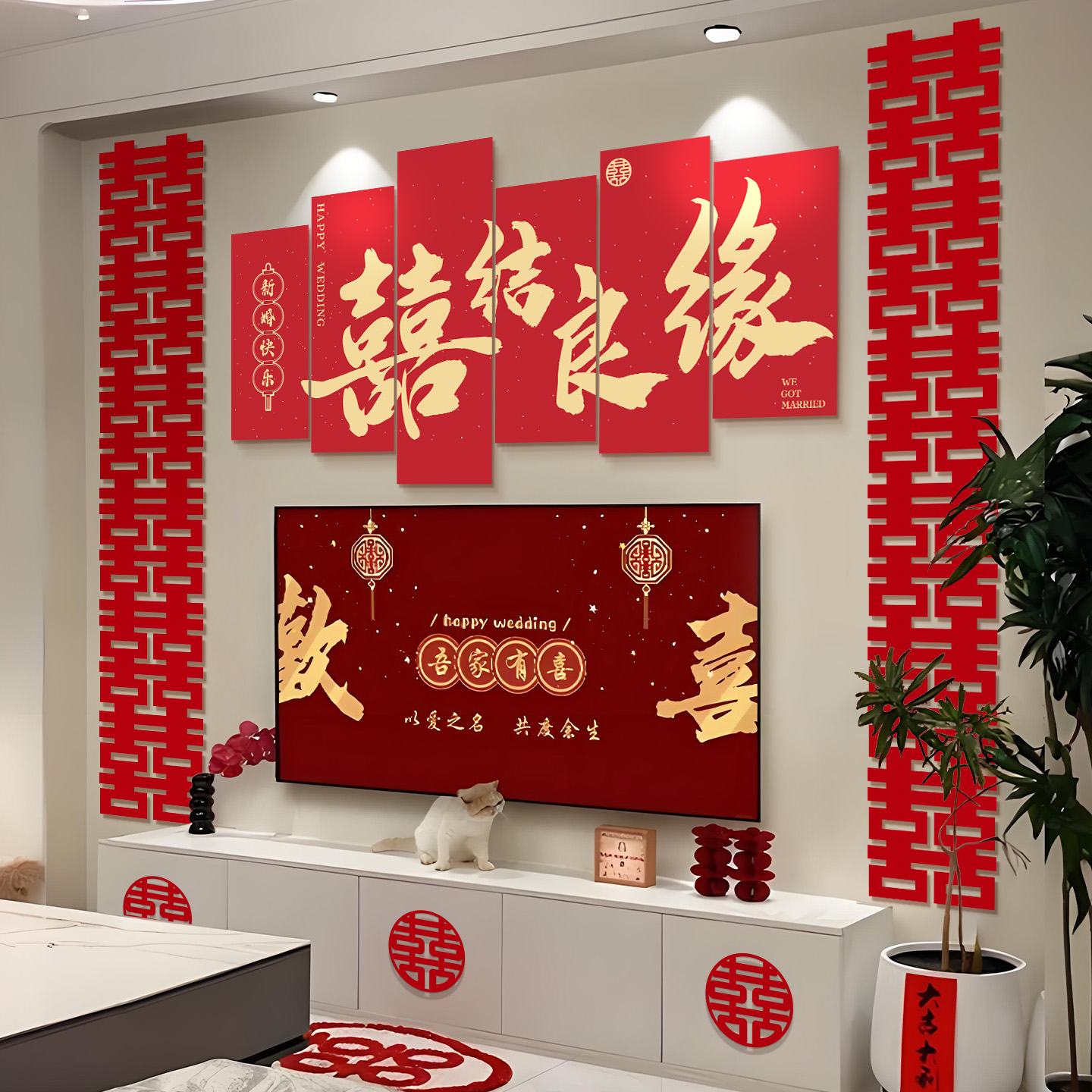 婚房布置套装男女方结婚礼新房客厅卧室电视机背景墙晨袍装饰拉花