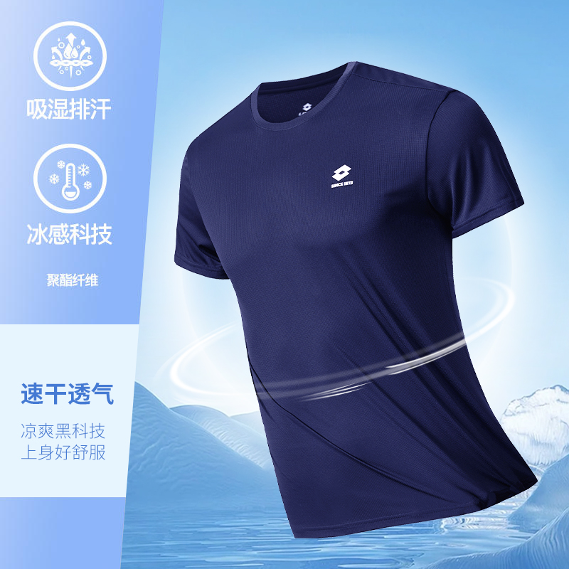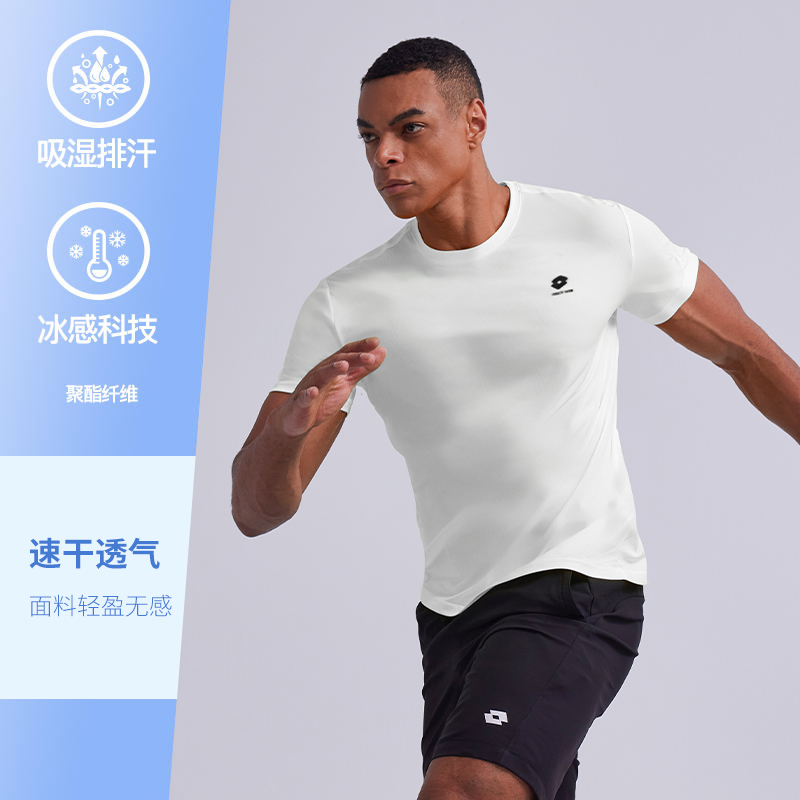 LOTTO乐途男款2025新款夏季速干黑色上衣透气健身运动圆领跑步T恤
