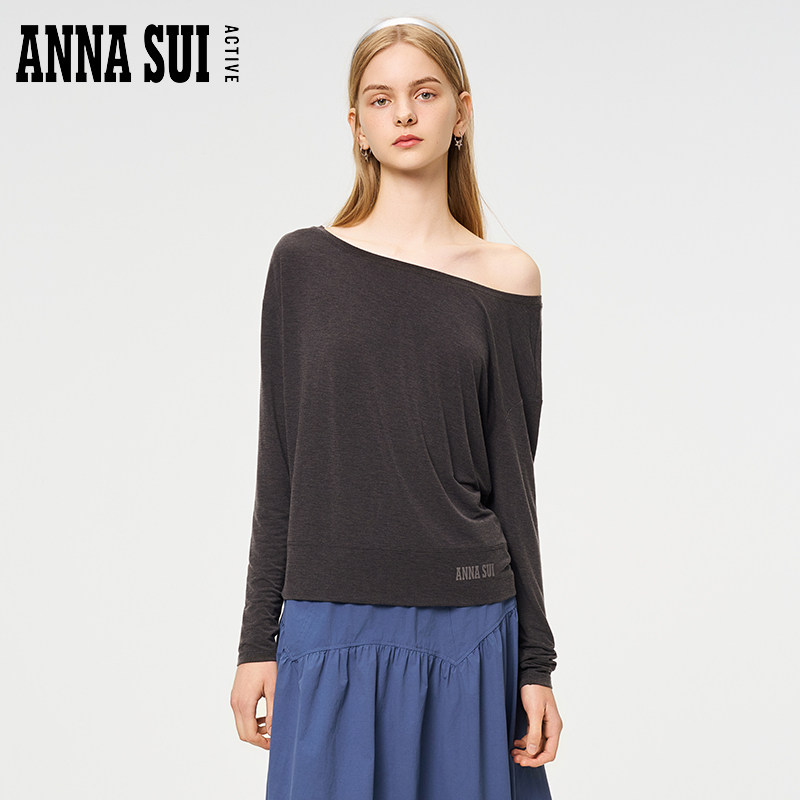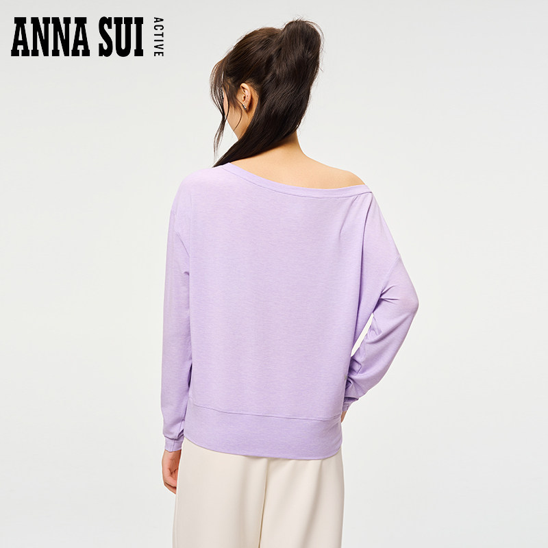 ANNA SUI安娜苏运动 斜肩一字领休闲运动抗菌长袖T恤吸湿速干亲肤