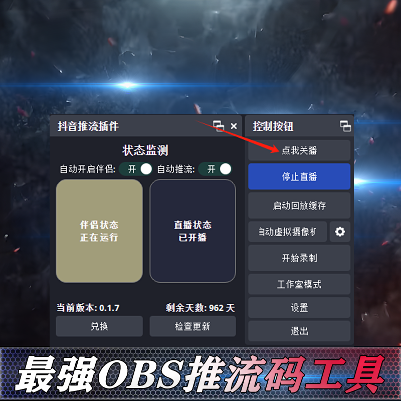 OBS抖音推流码获取工具直播伴侣手机全自动开播推流码获取工具