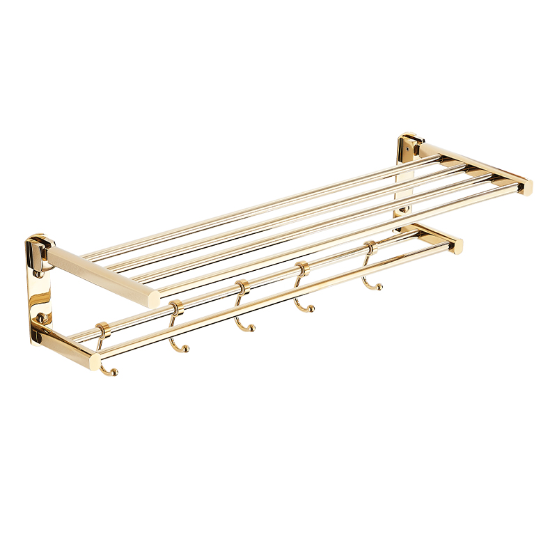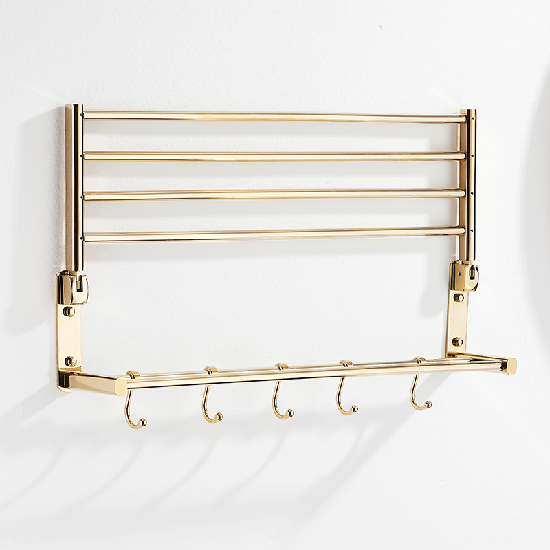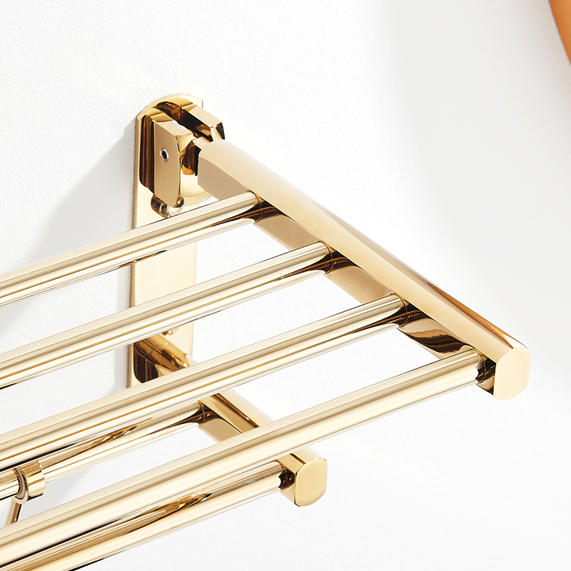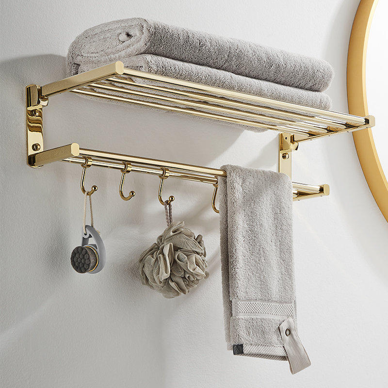 全铜毛巾架卫生间免打孔浴室置物架一体高端轻奢金卫浴挂件浴巾架