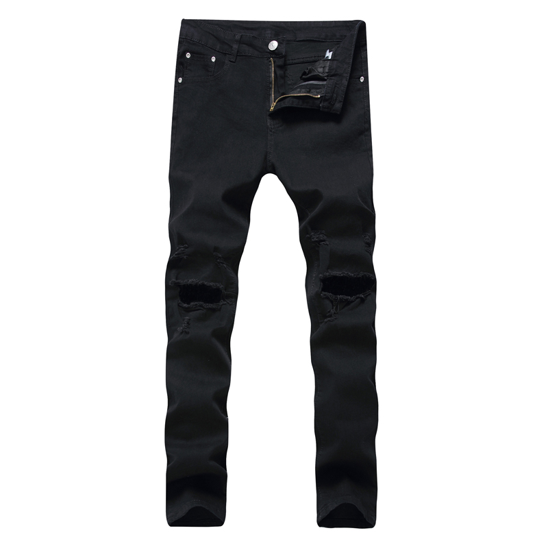 秋冬潮流高街FOG膝盖破洞牛仔裤修身男士休闲百搭弹力小脚裤黑色
