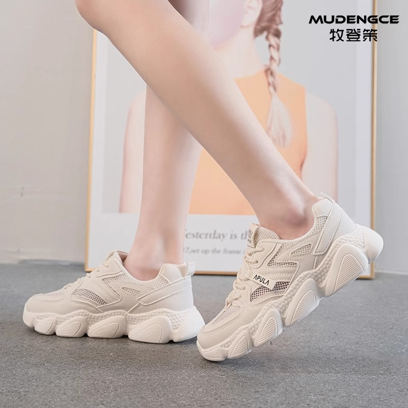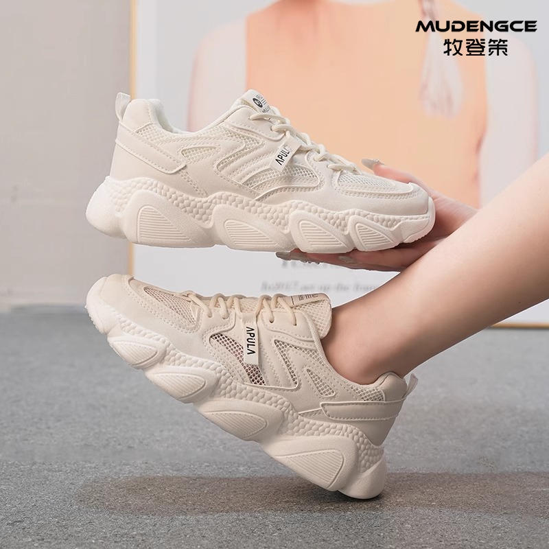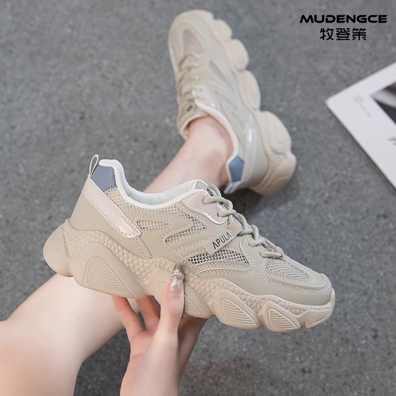 厚底单面老爹鞋女新款跑步百搭轻便网面鞋薄款减震透气轻奢运动鞋