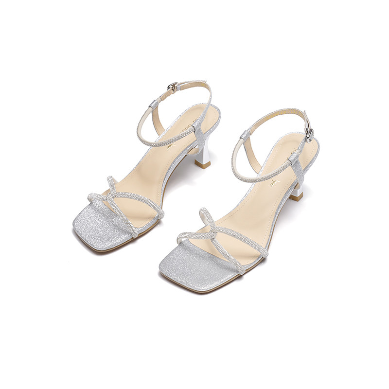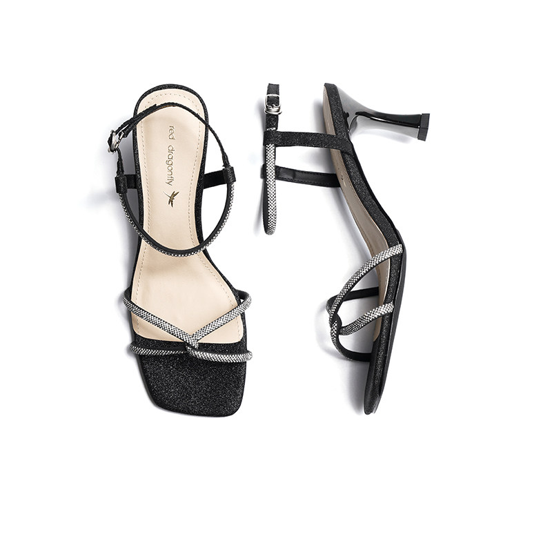 红蜻蜓一字带凉鞋女夏季外穿粗跟配裙子仙女气质高跟凉鞋断码清仓