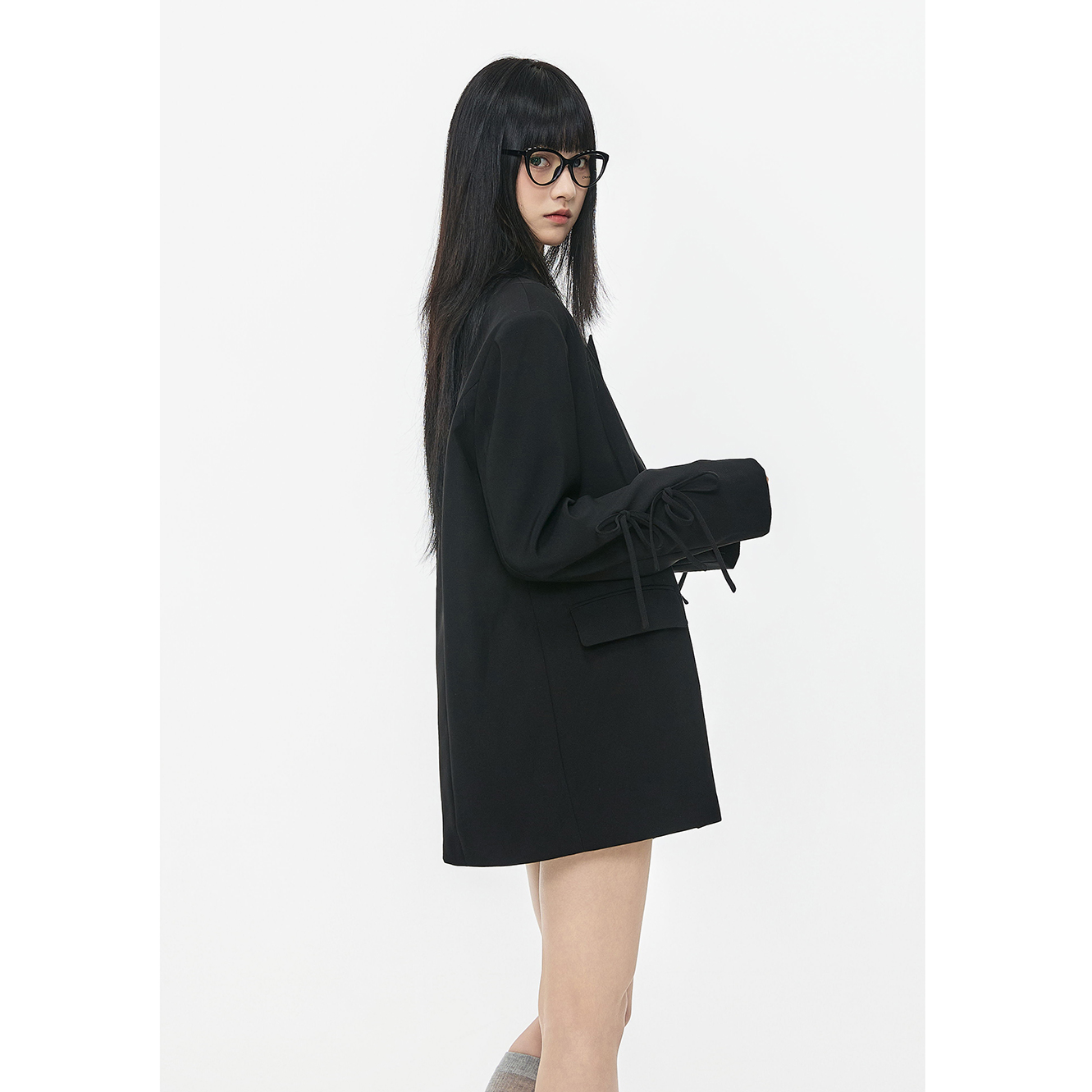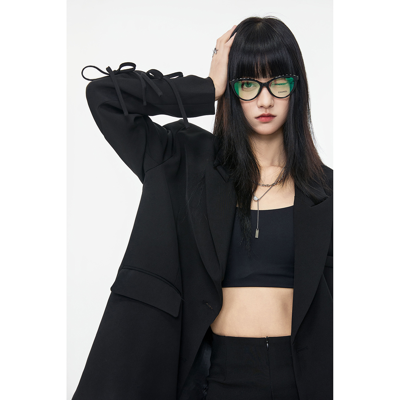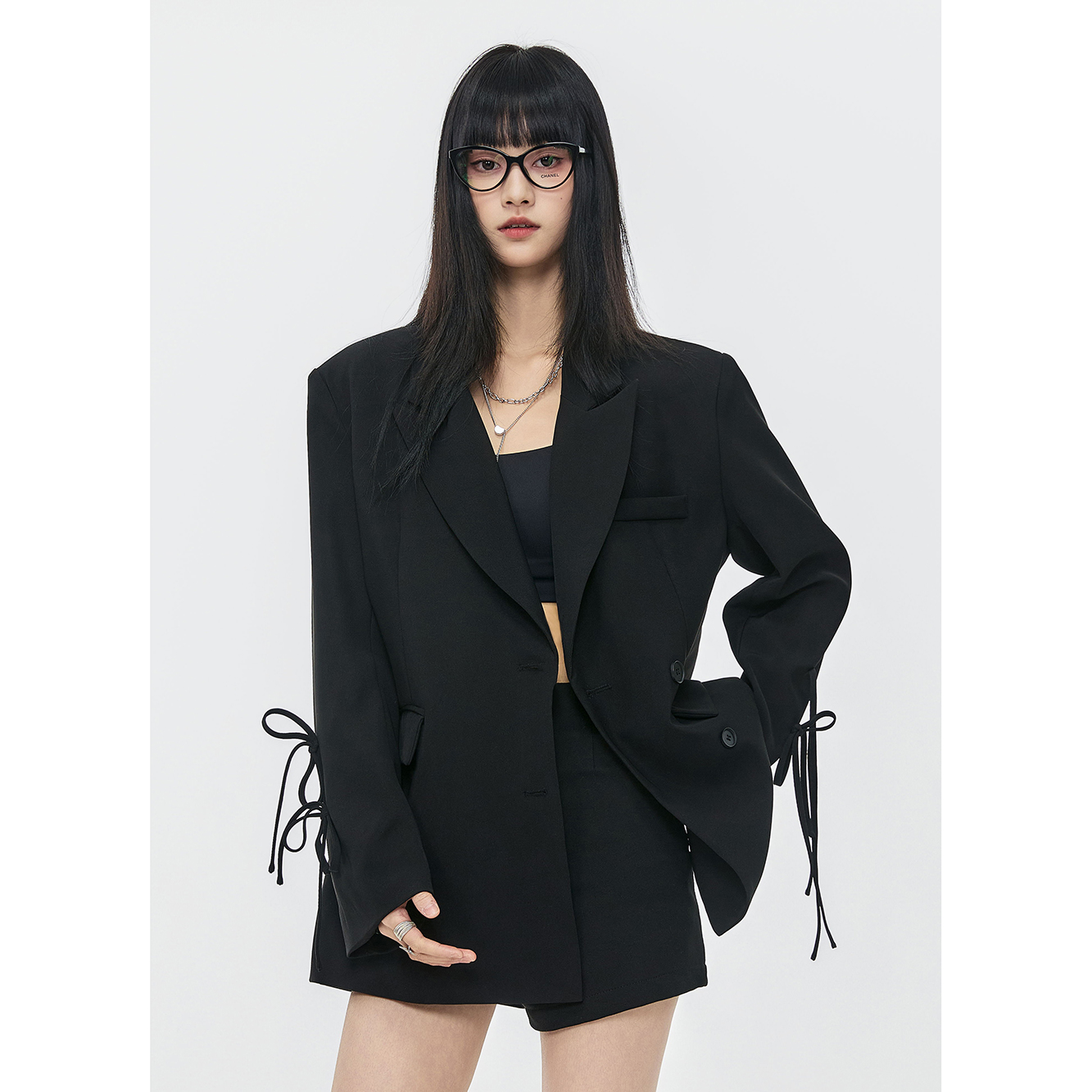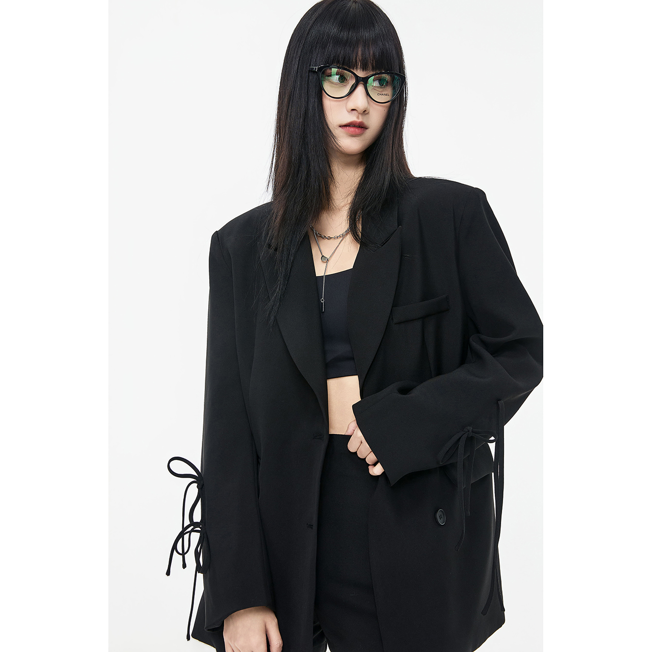 SeeU喜尤设计感黑色休闲西装外套女蝴蝶结西装宽松百搭显瘦西服女