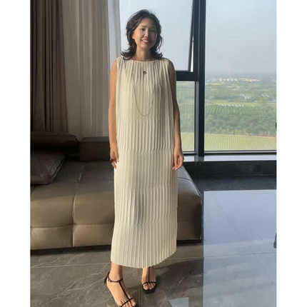 BENYI/本异 直筒极简老钱风无袖背心船领褶皱连衣裙
