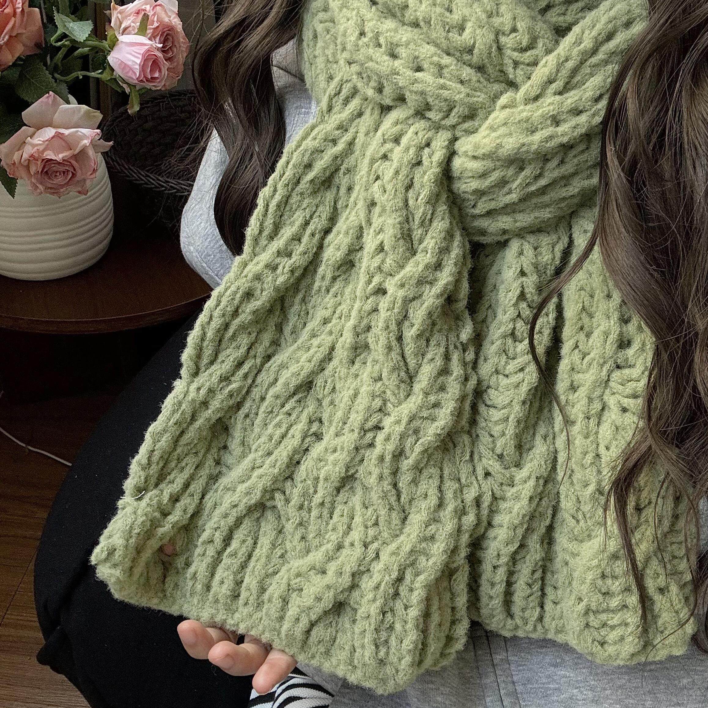 绿色围巾毛线手工diy编织材料包自制针织围脖2025冬季送男女朋友