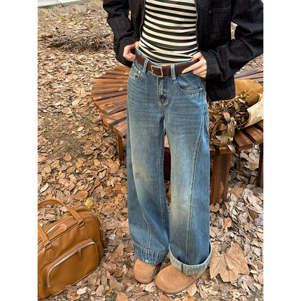 王家有鱼新款阔腿裤2025百搭修身显瘦宽松直筒牛仔裤子女时尚长裤