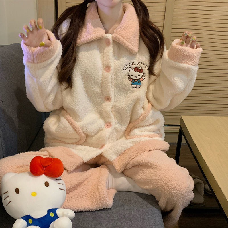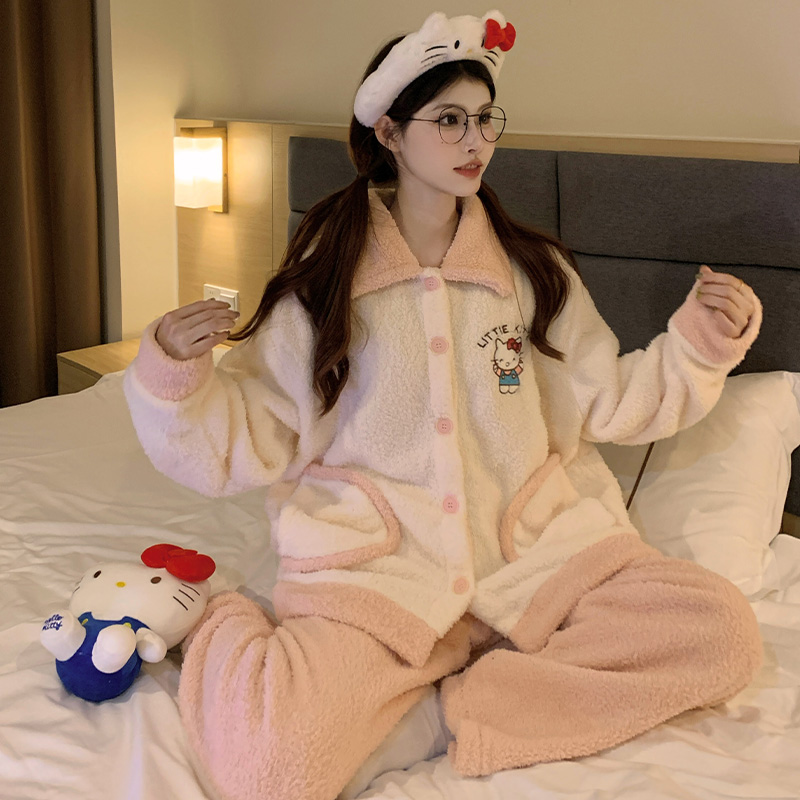 珊瑚绒睡衣女款冬季加绒加厚半边绒卡通少女2025新款秋冬款家居服