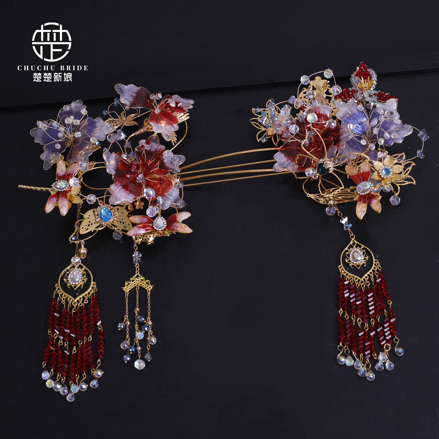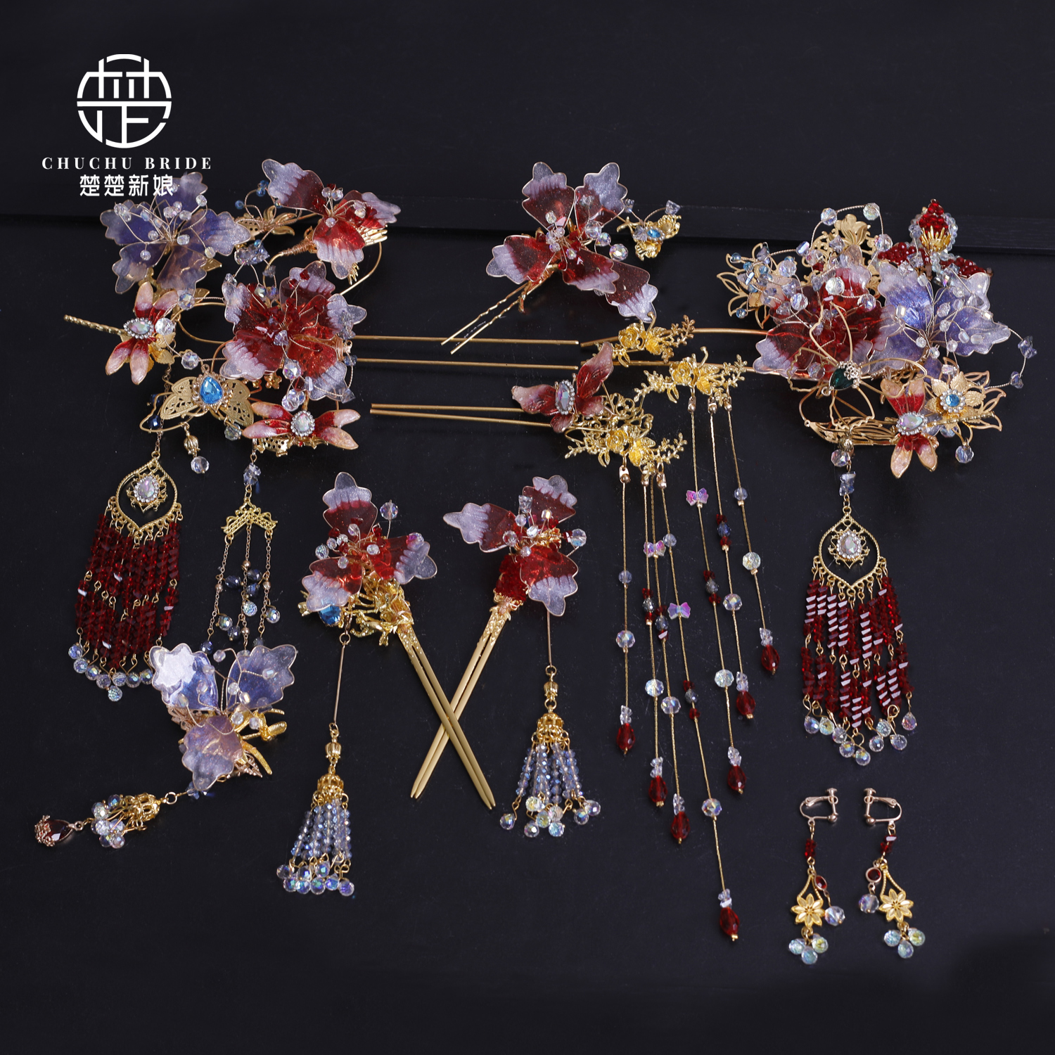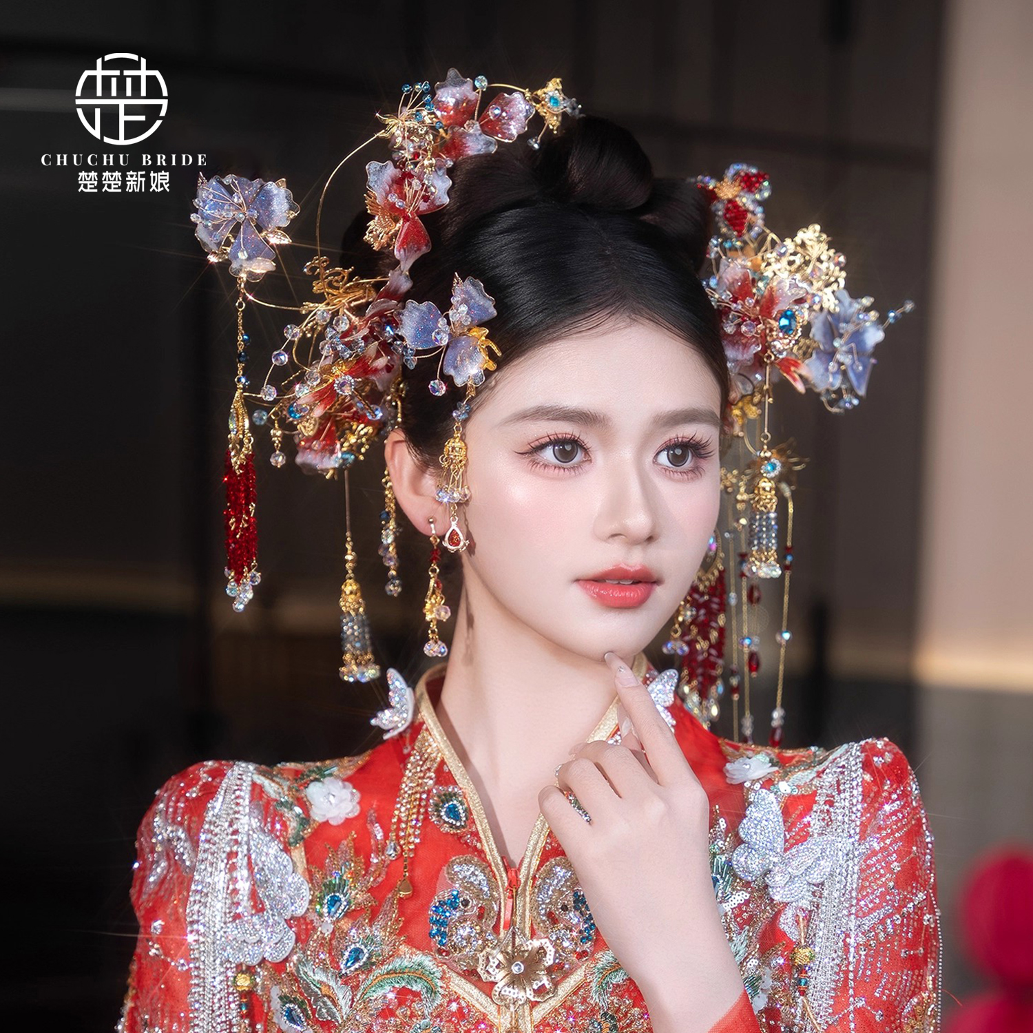 2025新款新娘秀禾头饰红色中式龙凤褂大气结婚凤冠秀禾服头饰