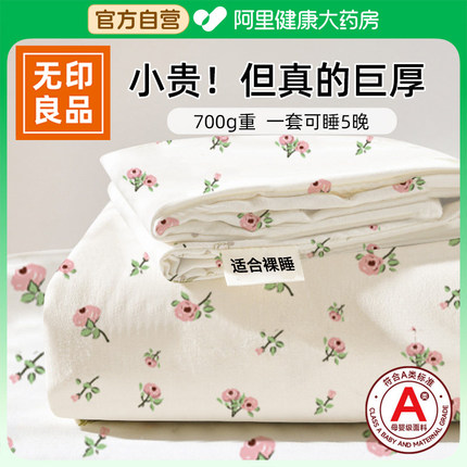 无印良品一次性床品四件套700g加厚纯棉旅行酒店双人被罩床单枕套