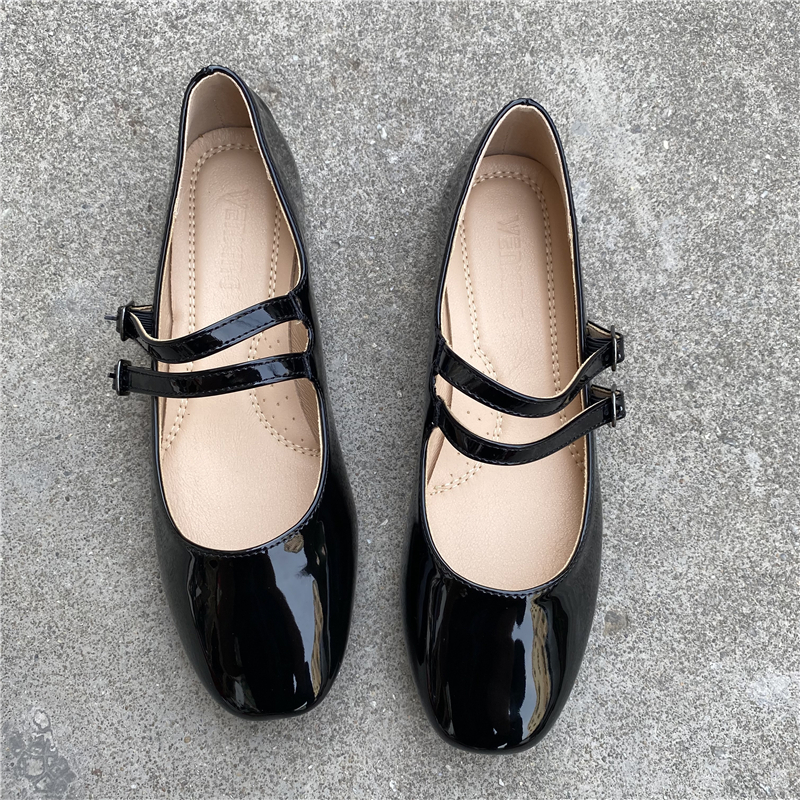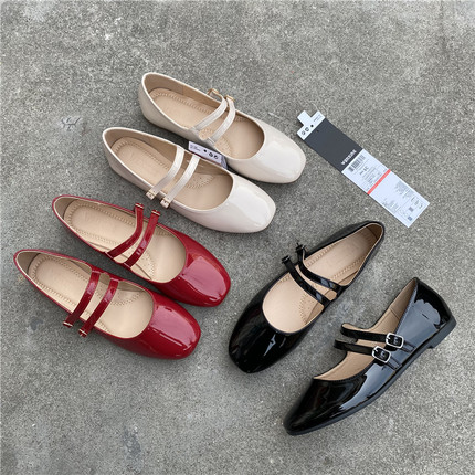 玛丽珍鞋浅口搭扣单鞋女方头平底
