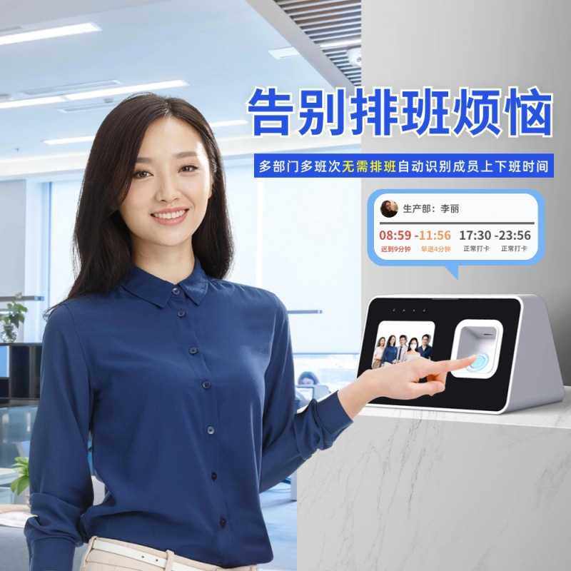 勤上智能云考勤机打卡机多人脸指纹识别一体机员工上班刷脸签到机